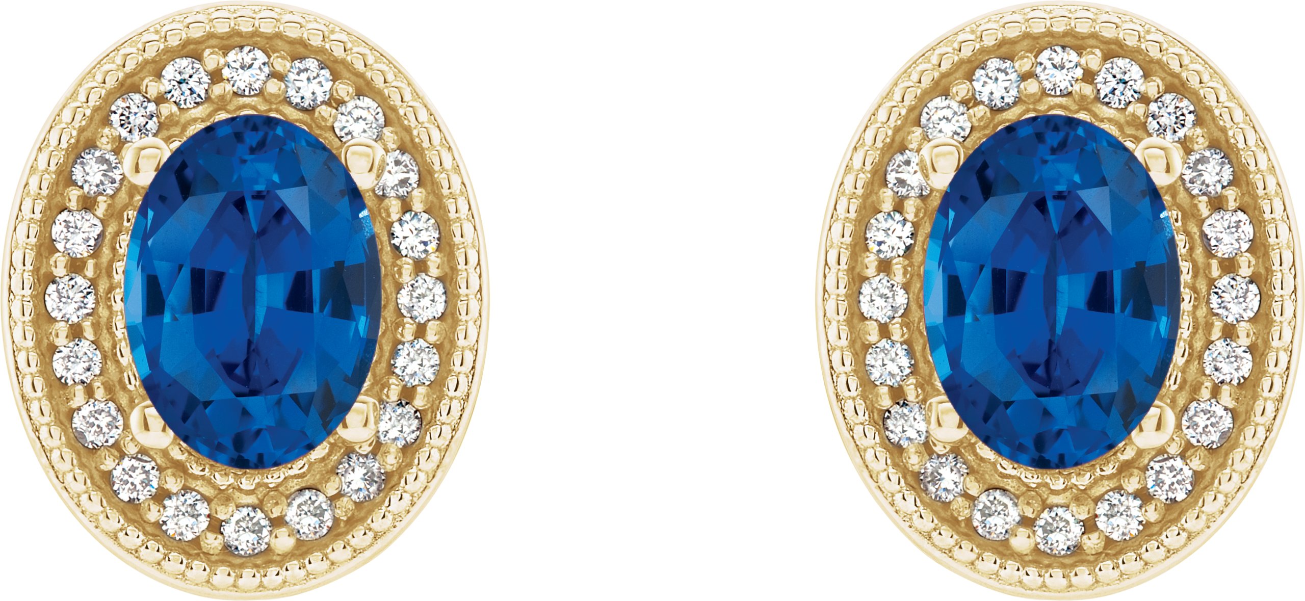 14K Yellow Blue Sapphire & 1/5 CTW Diamond Halo Style Earrings