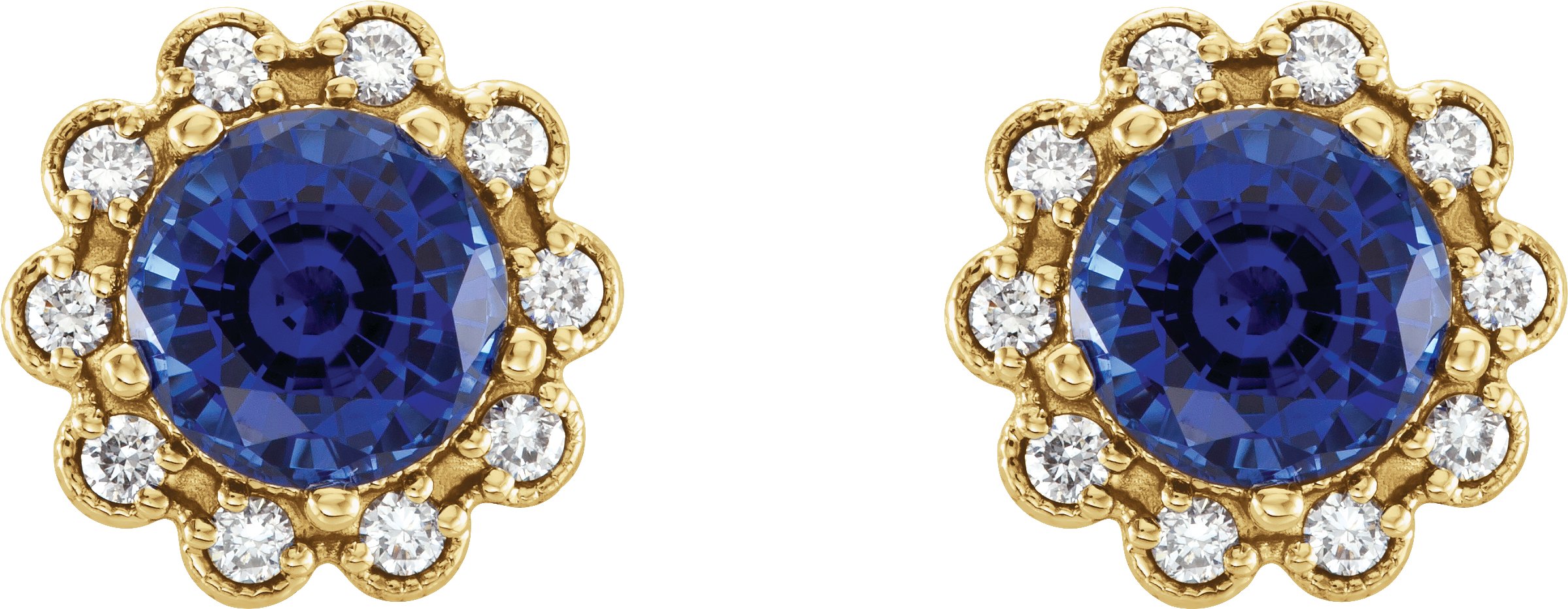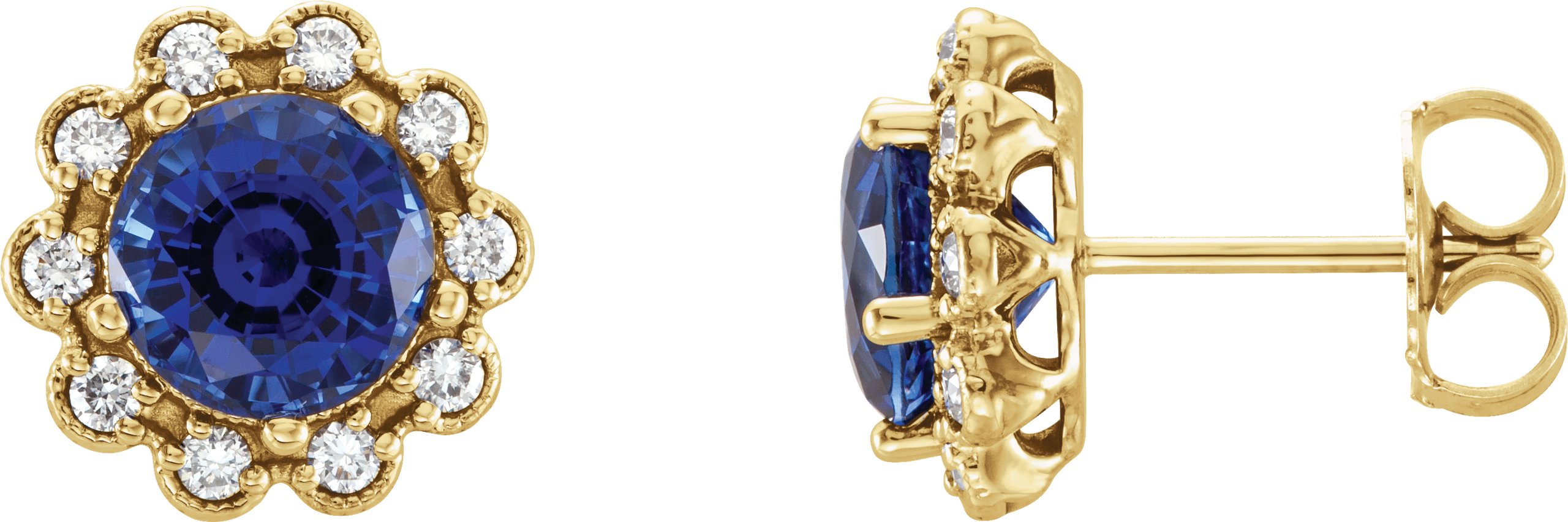 14K Yellow Blue Sapphire & 1/3 CTW Diamond Earrings