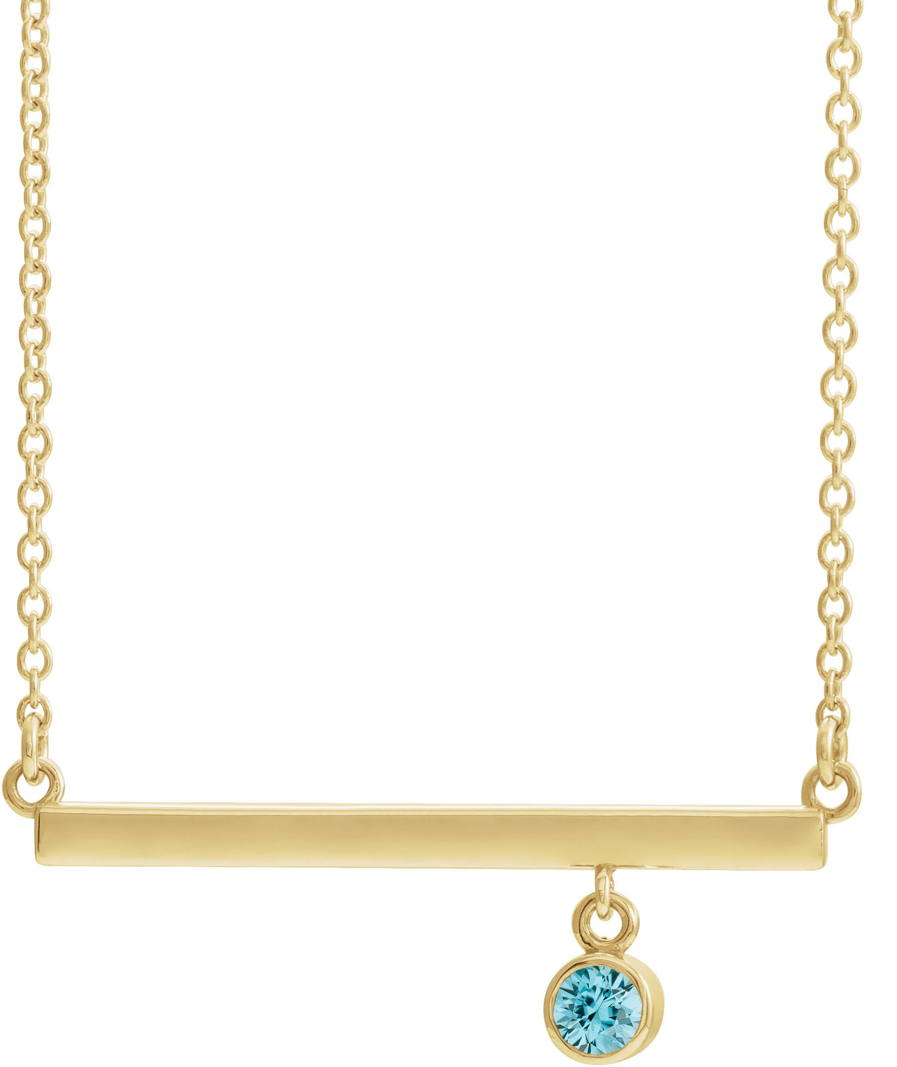 14K Yellow Blue Zircon Bezel Set 16 inch Bar Necklace
