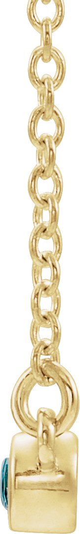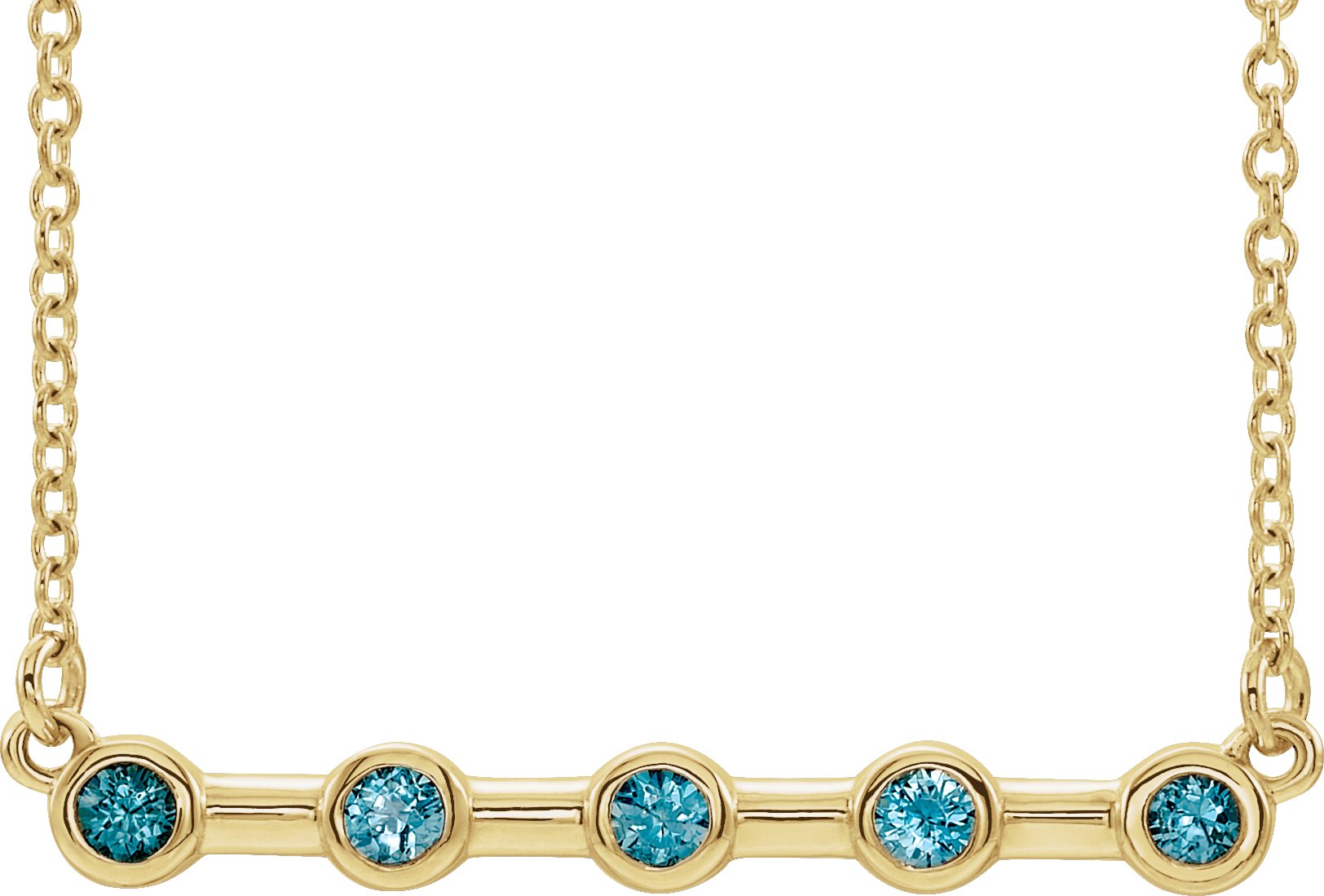 14K Yellow Blue Zircon Bezel Set Bar 18 inch Necklace