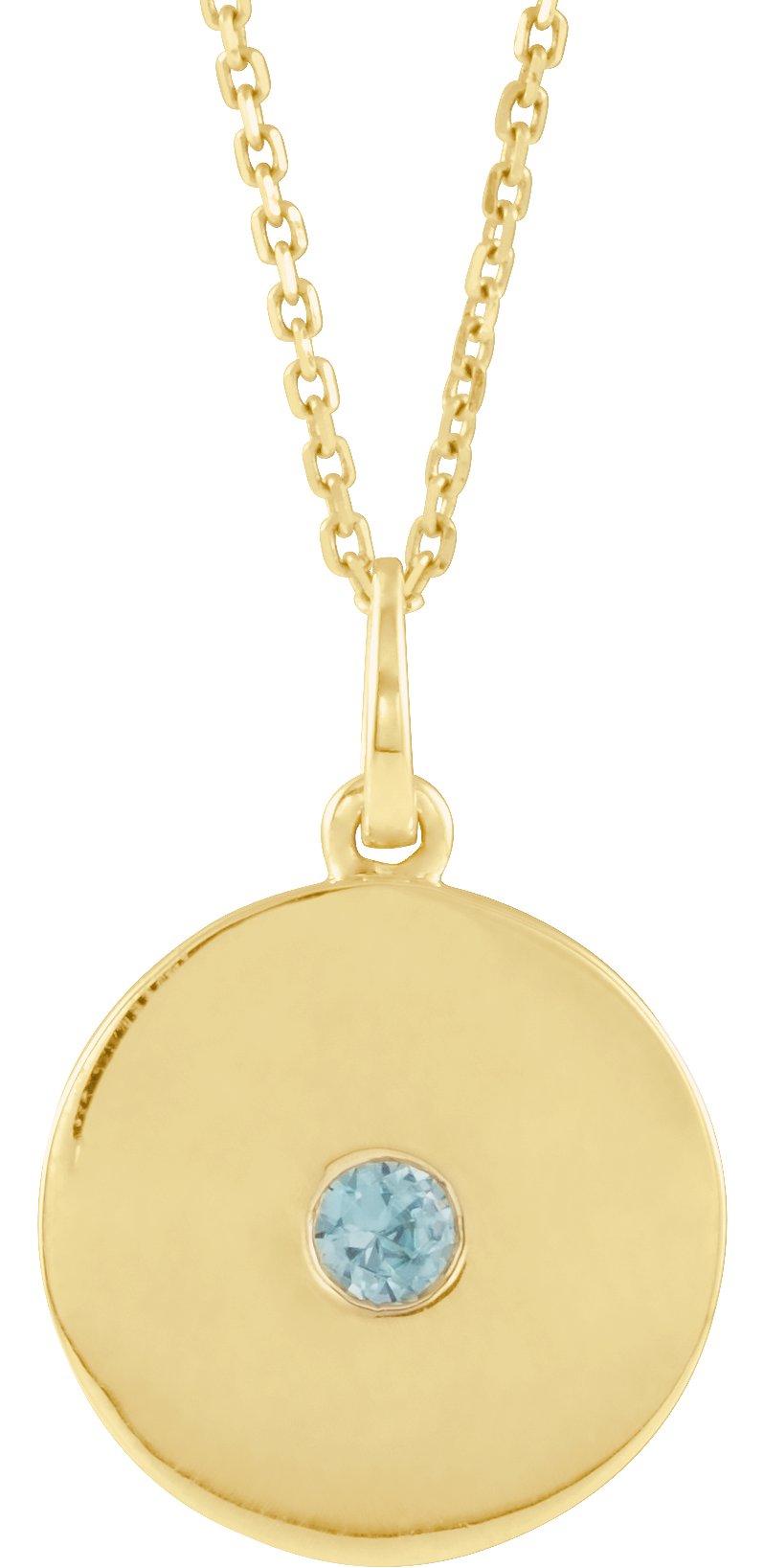 14K Yellow Blue Zircon Disc 16 18 inch Necklace