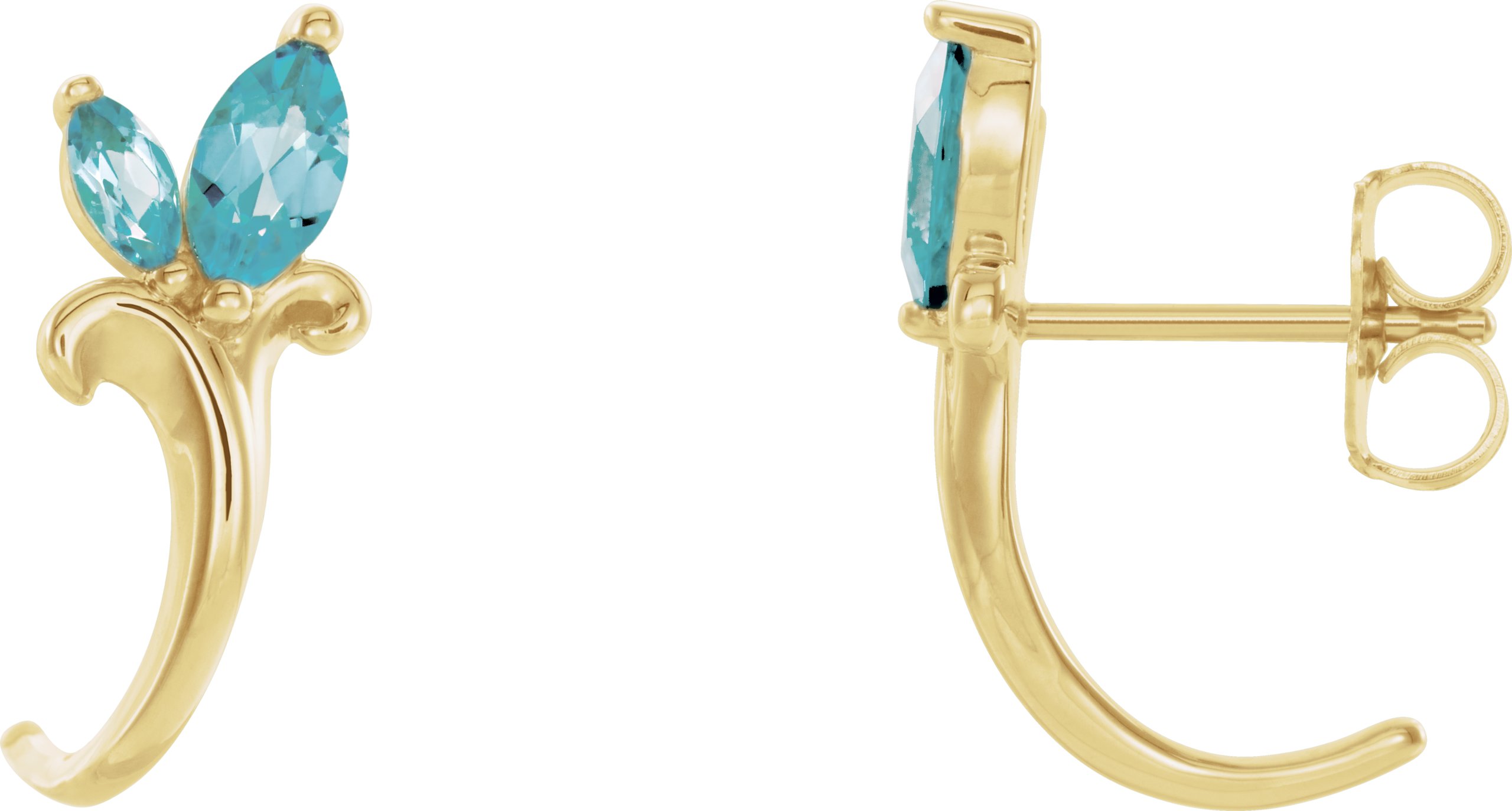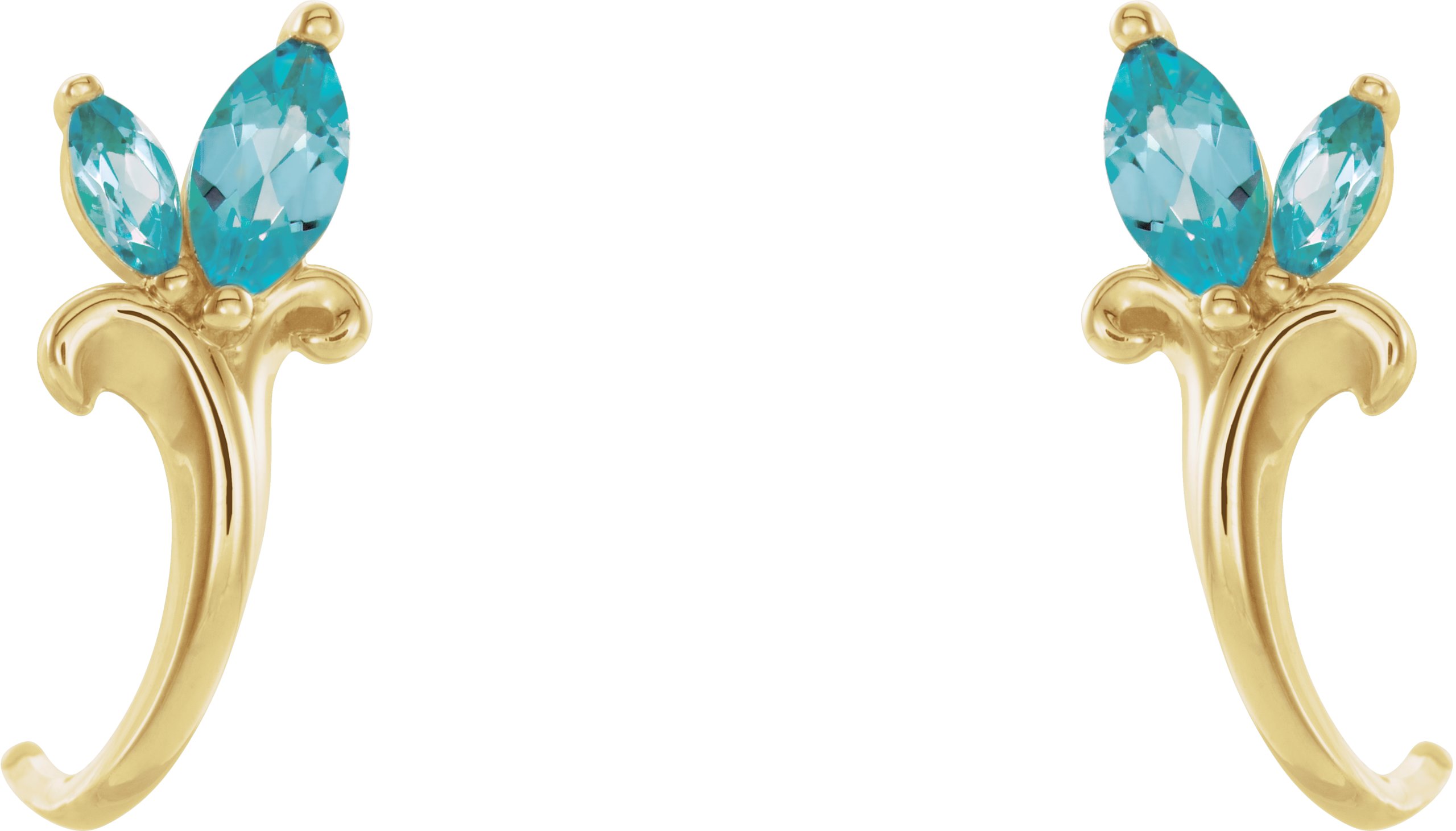 14K Yellow Blue Zircon Floral Inspired J Hoop Earrings