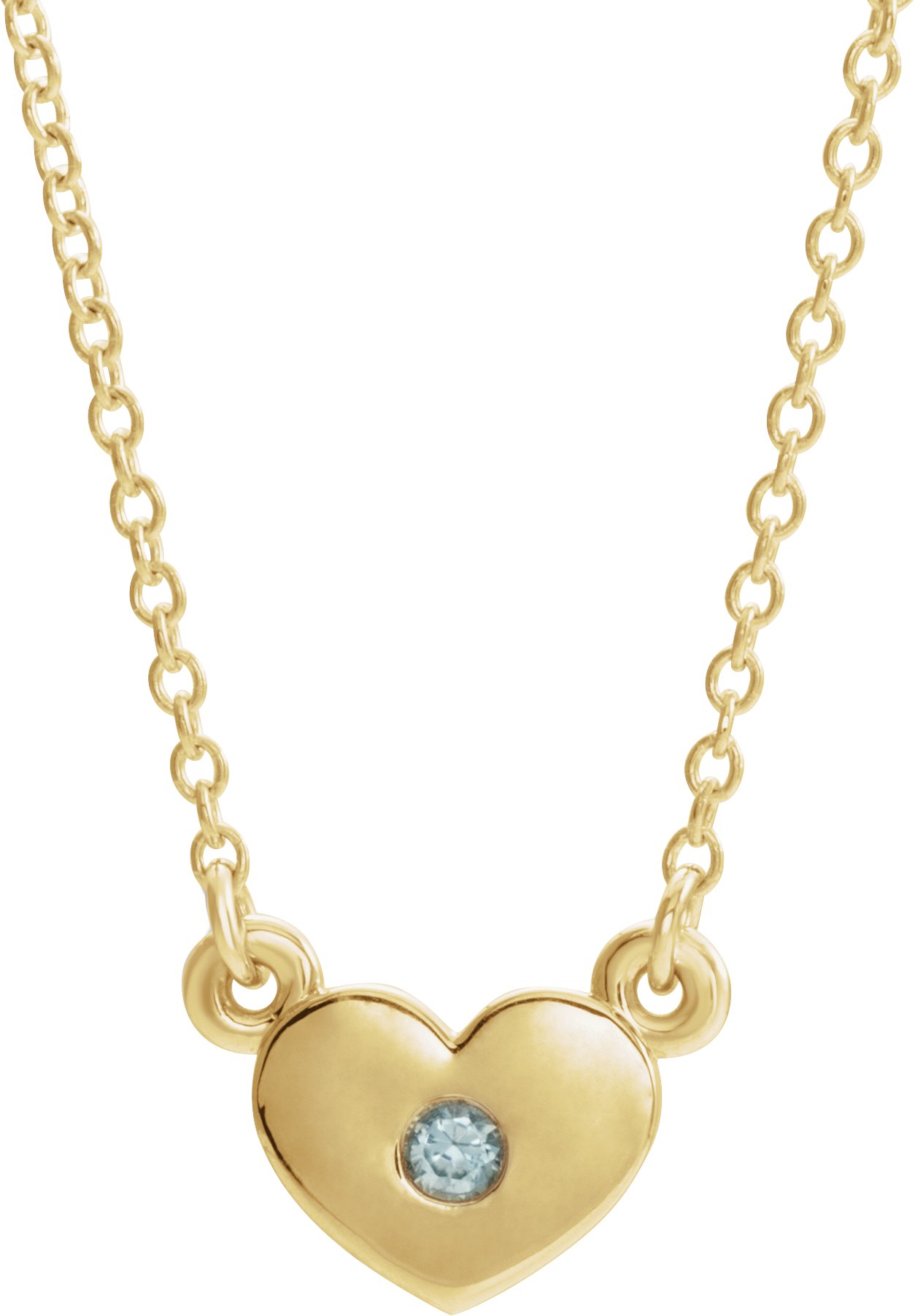14K Yellow Blue Zircon Heart 16 inch Necklace