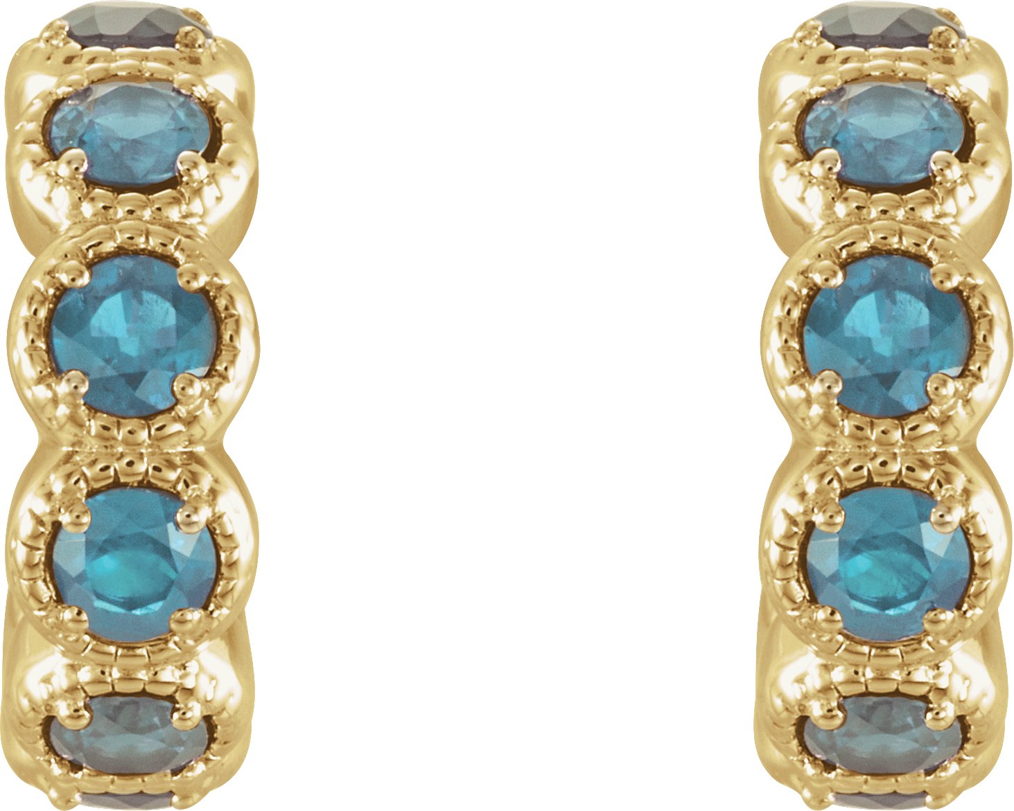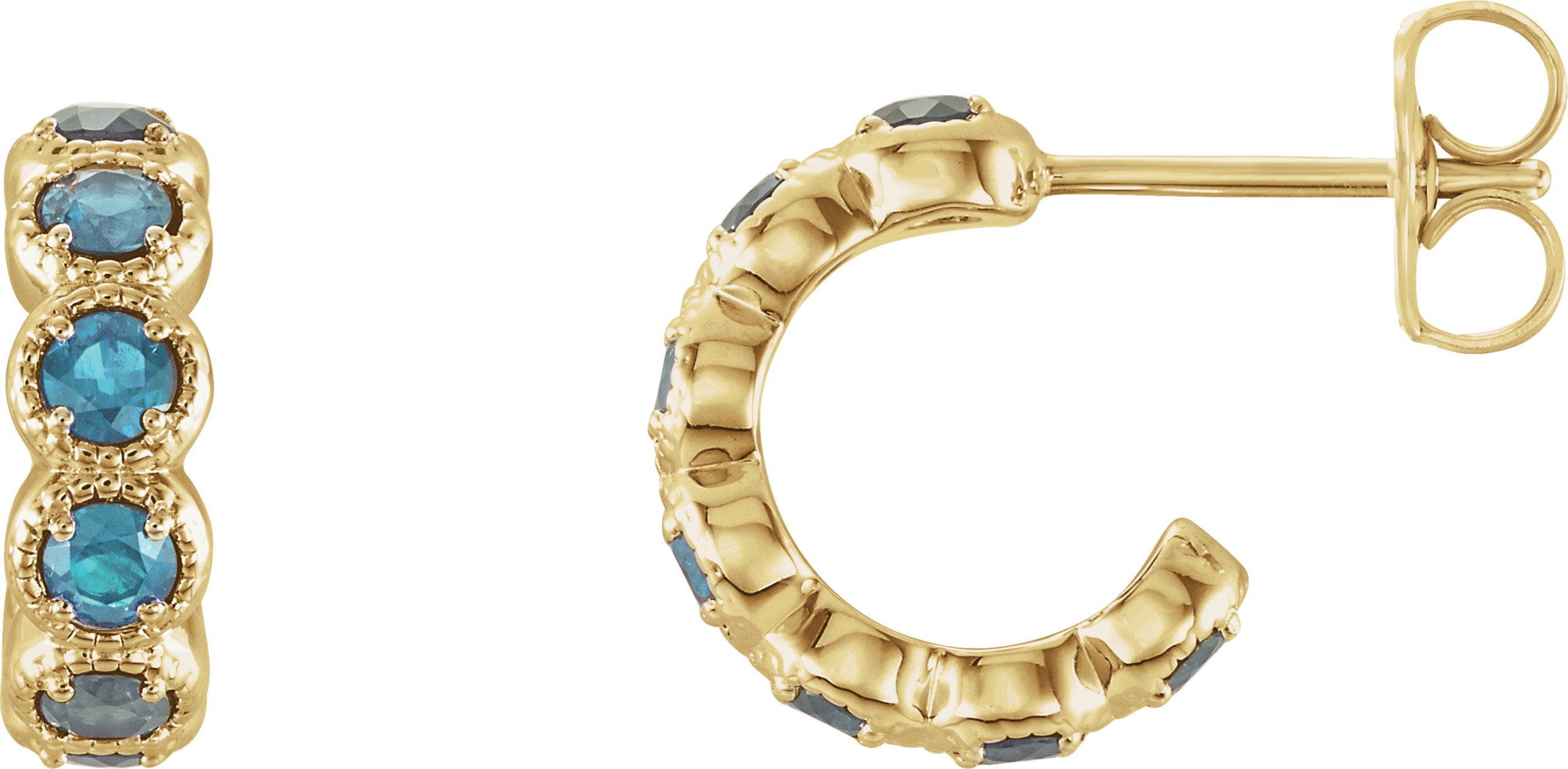 14K Yellow Blue Zircon Hoop Earrings