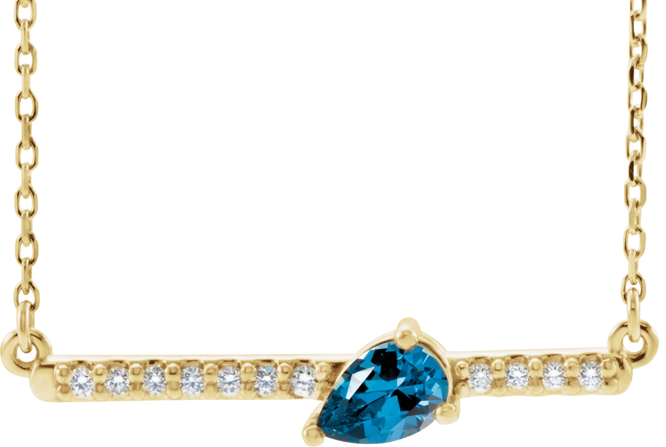 14K Yellow Blue Zircon & 1/10 CTW Diamond 16 inch Necklace