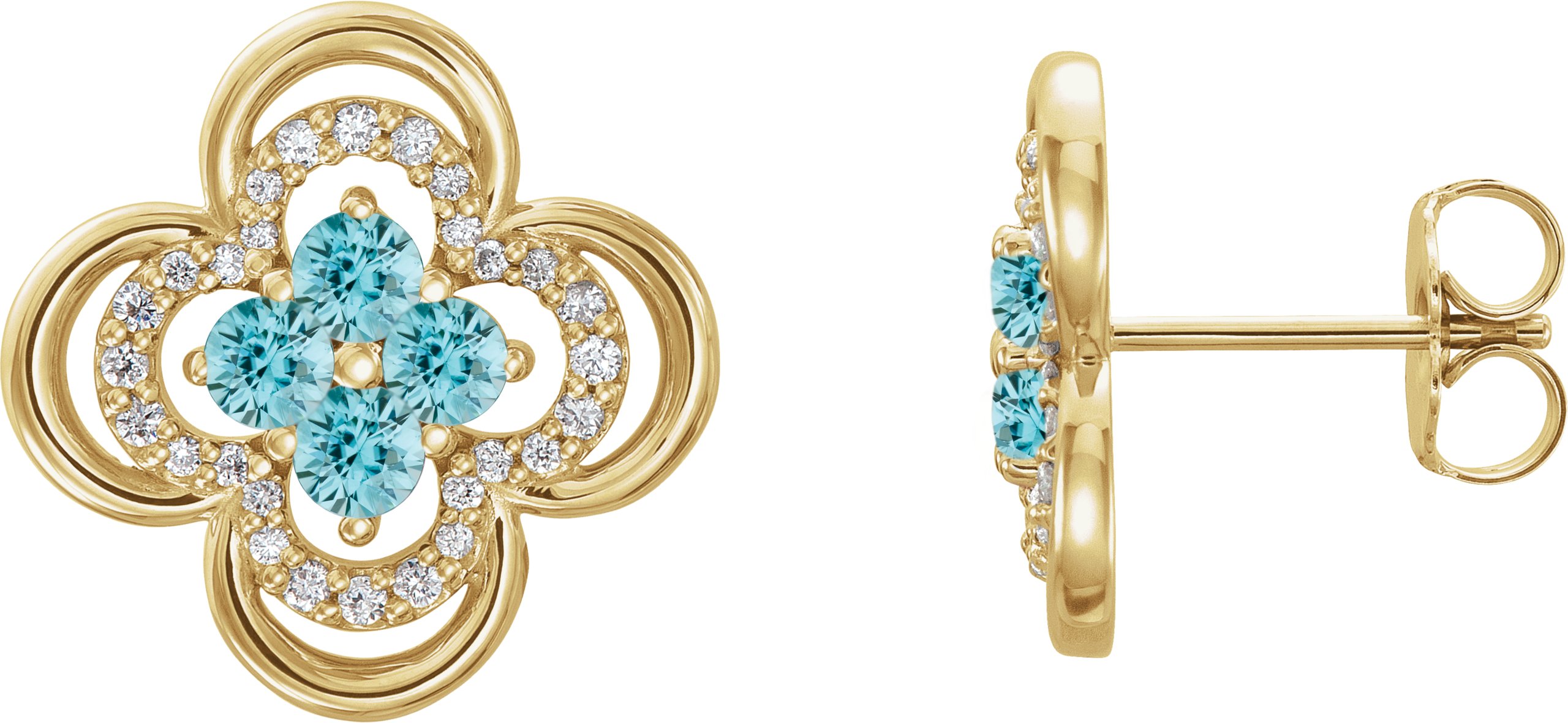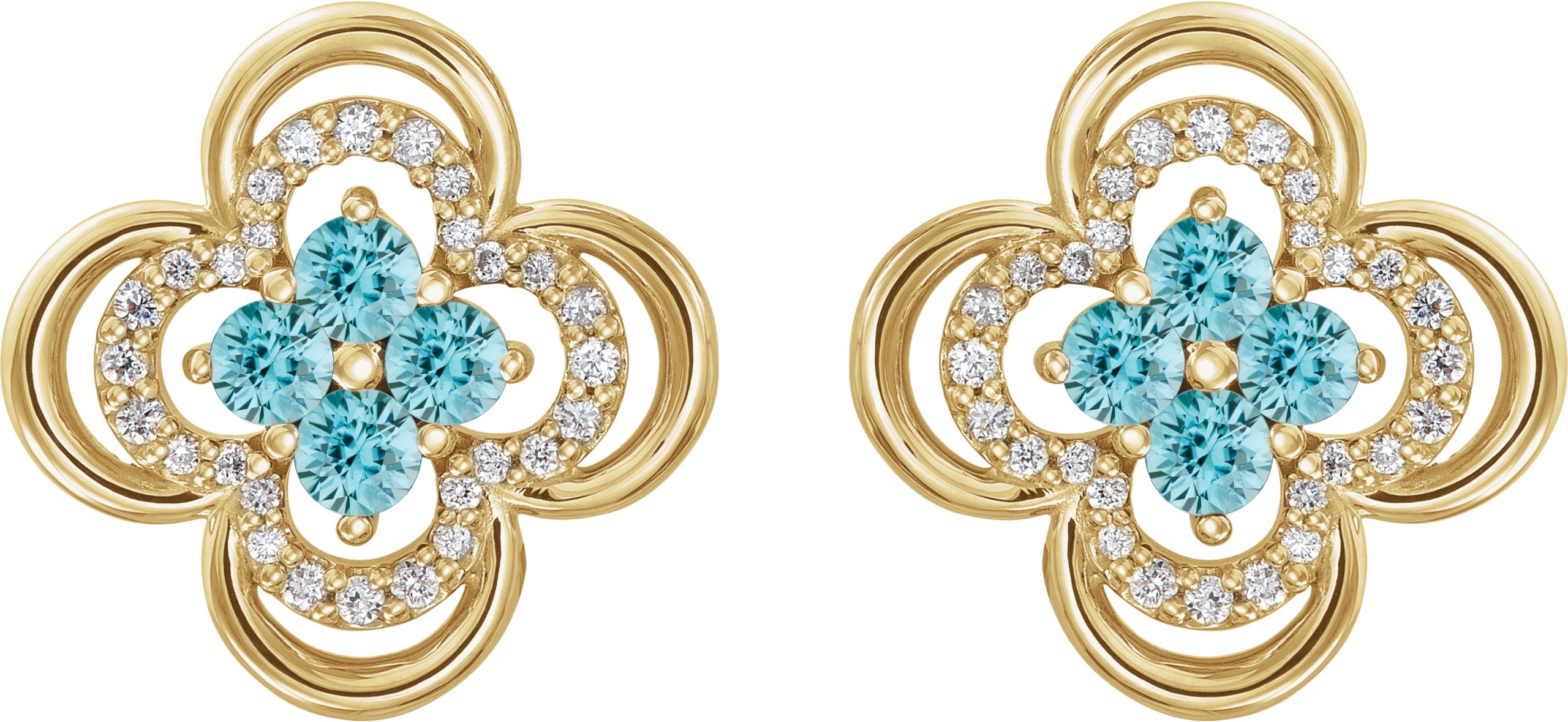 14K Yellow Blue Zircon & 1/5 CTW Diamond Clover Earrings