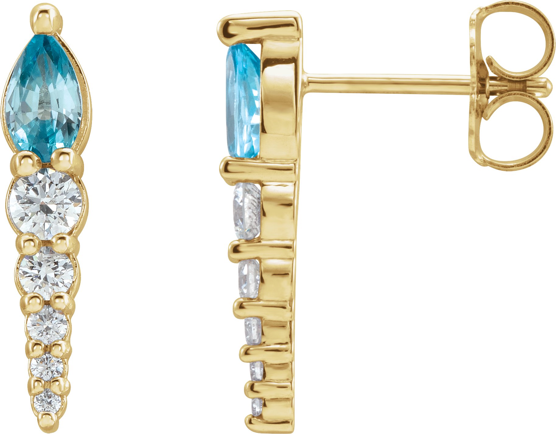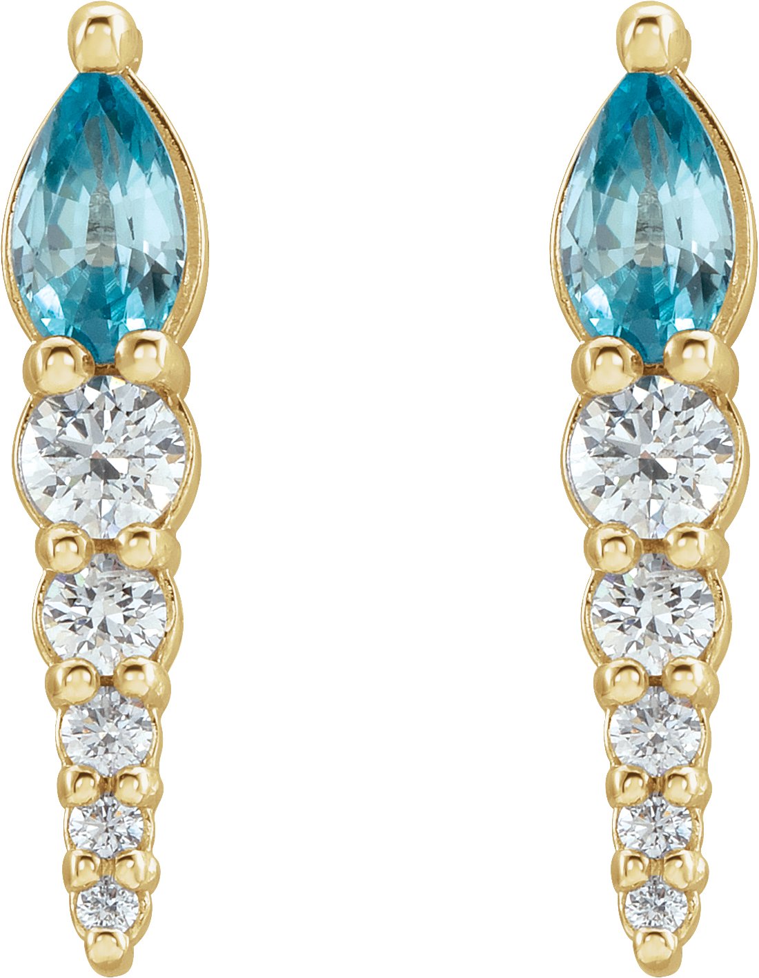 14K Yellow Blue Zircon & 1/4 CTW Diamond Earrings