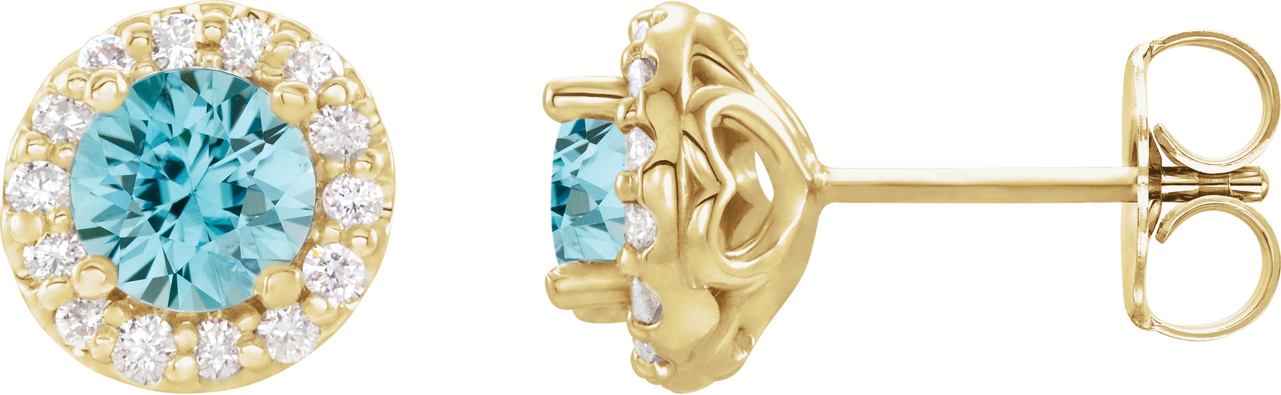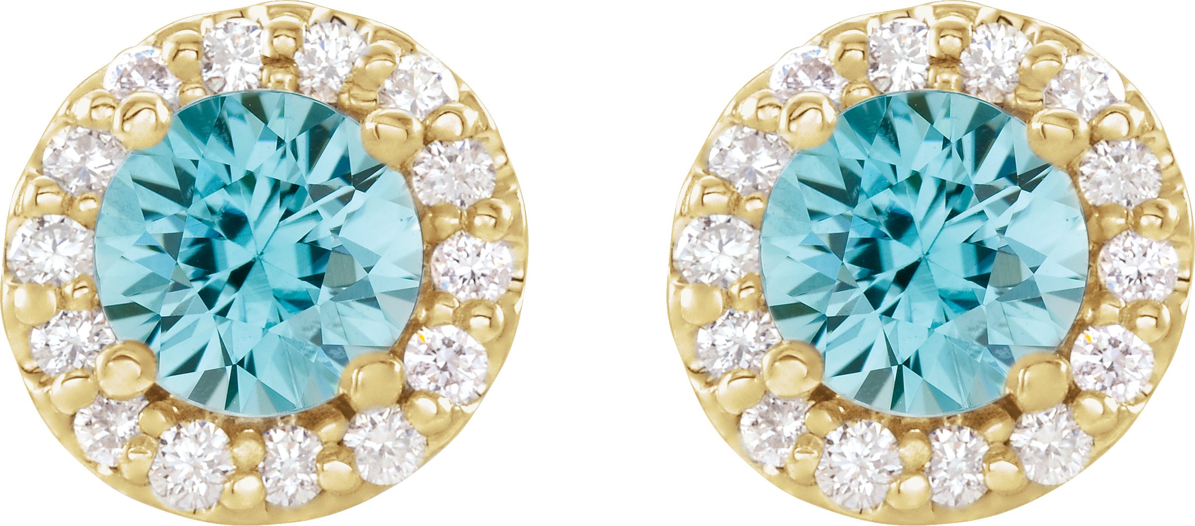 14K Yellow Blue Zircon & 1/4 CTW Diamond Earrings