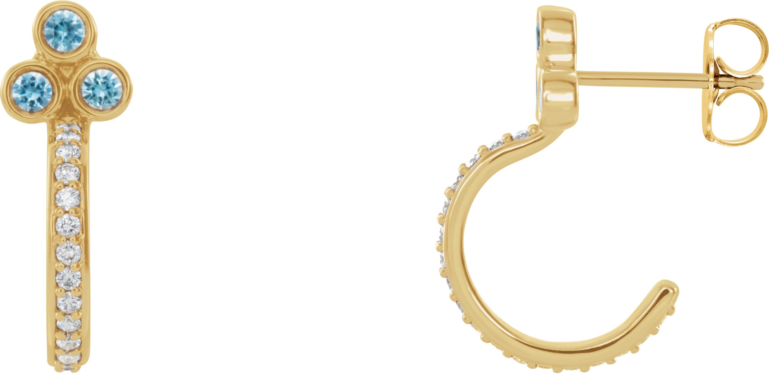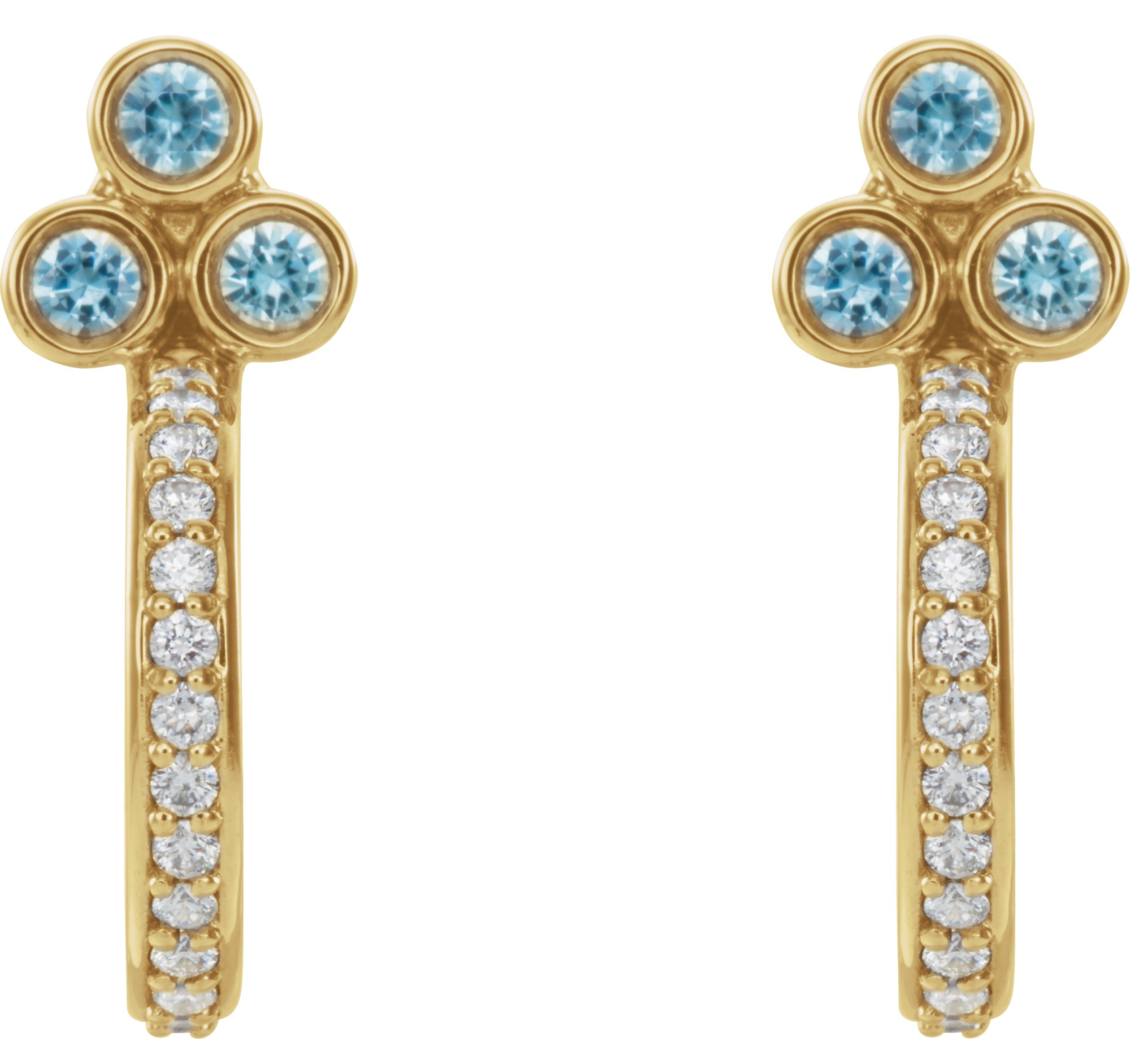 14K Yellow Blue Zircon & 1/4 CTW Diamond J Hoop Earrings