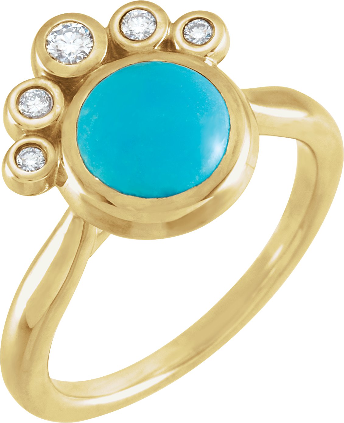 14K Yellow Bluebird Turquoise & 1/8 CTW Diamond Ring