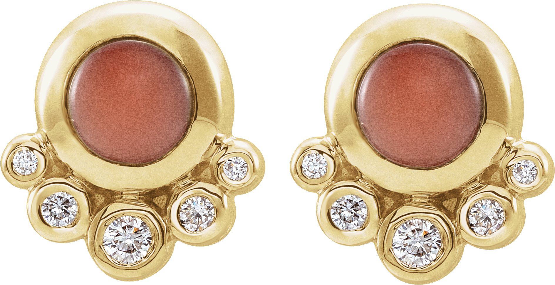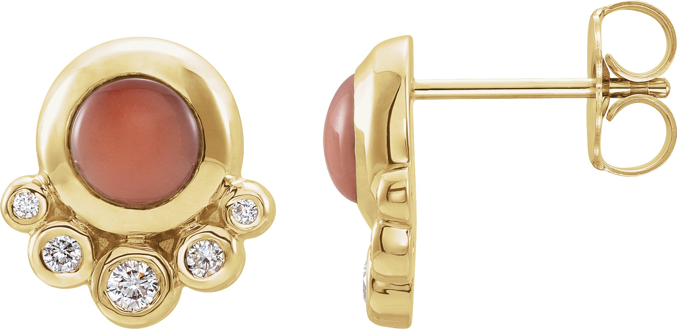 14K Yellow Cabochon Pink Coral & 1/8 CTW Diamond Earrings