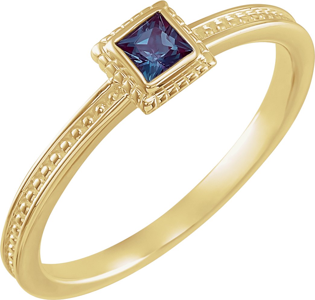 14K Yellow Chatham Created Alexandrite Stackable Family Ring