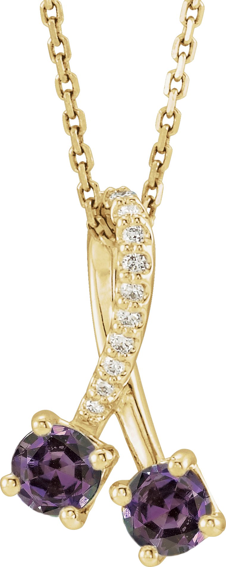 14K Yellow Chatham Created Alexandrite & .05 CTW Diamond 16 18" Necklace Ref. 16760856