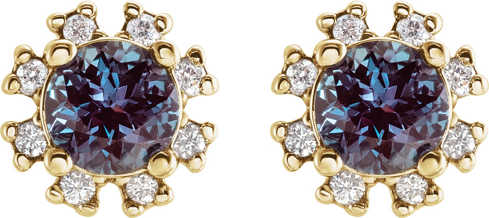 14K Yellow Chatham Created Alexandrite and .07 CTW Diamond Earrings