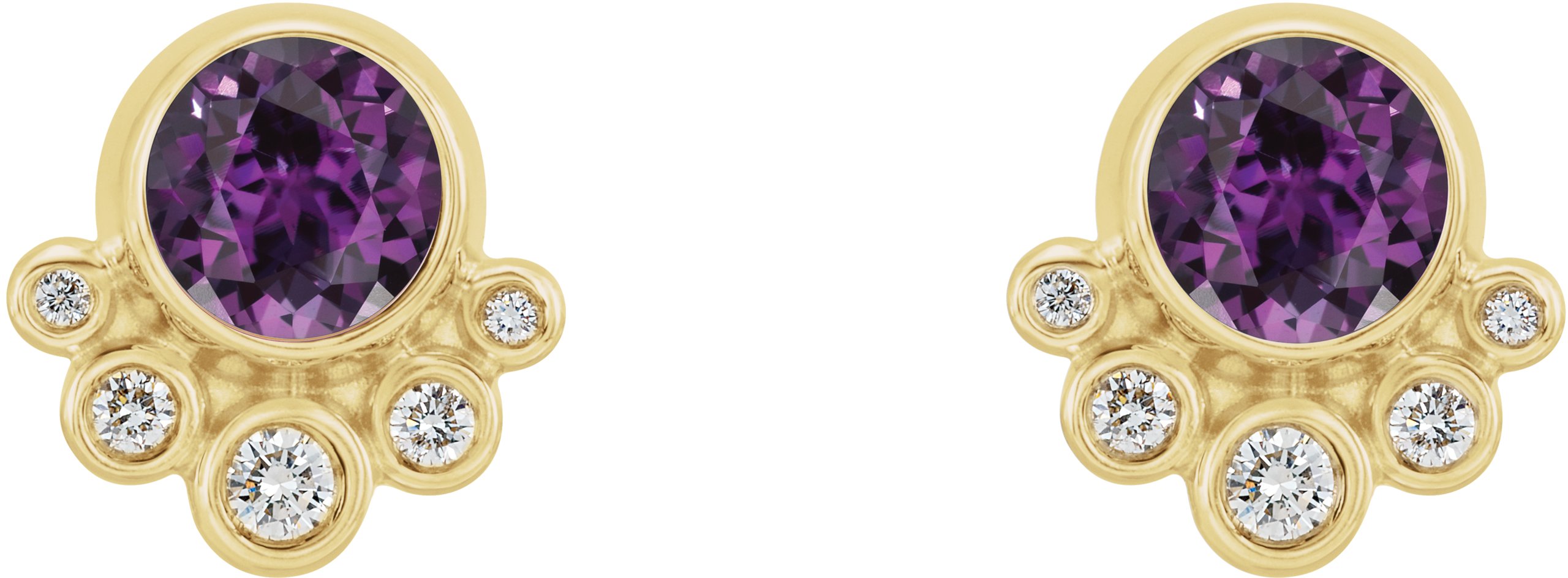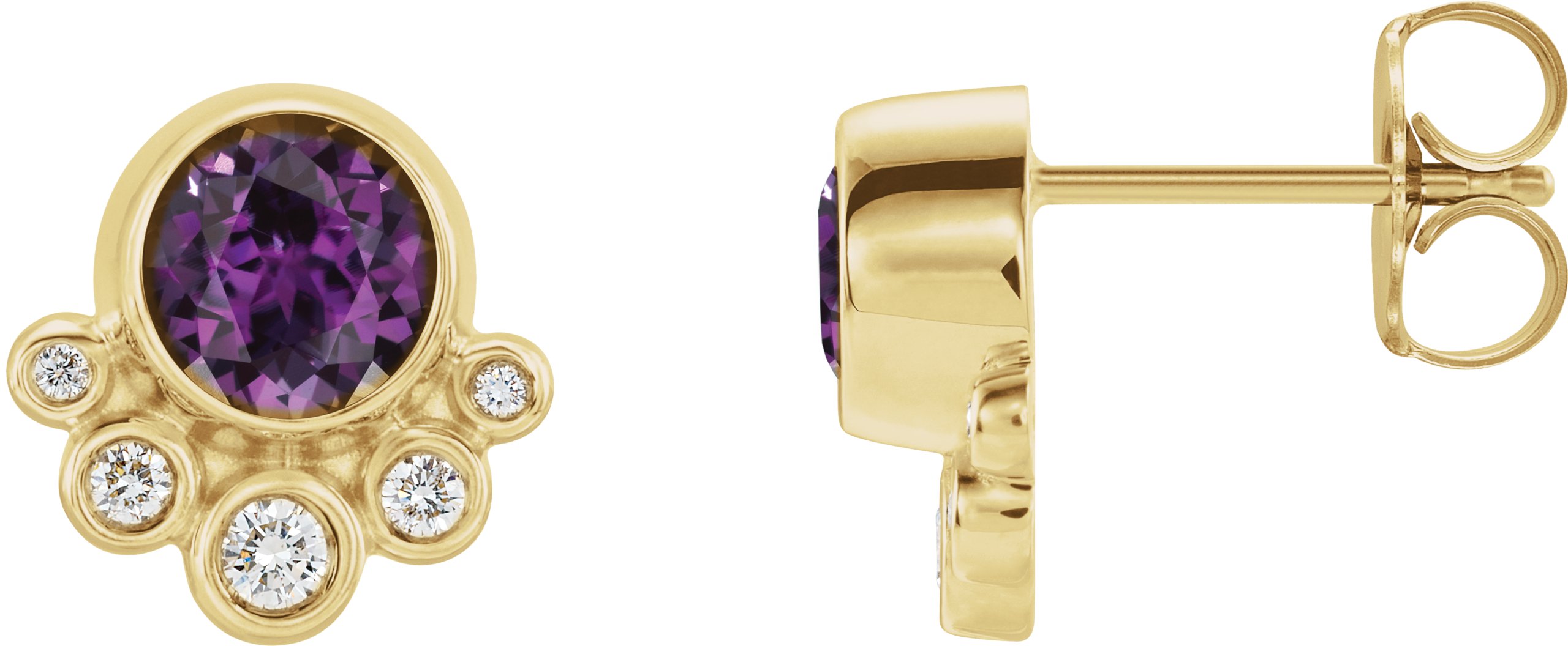 14K Yellow Chatham Created Alexandrite & 1/8 CTW Diamond Earrings