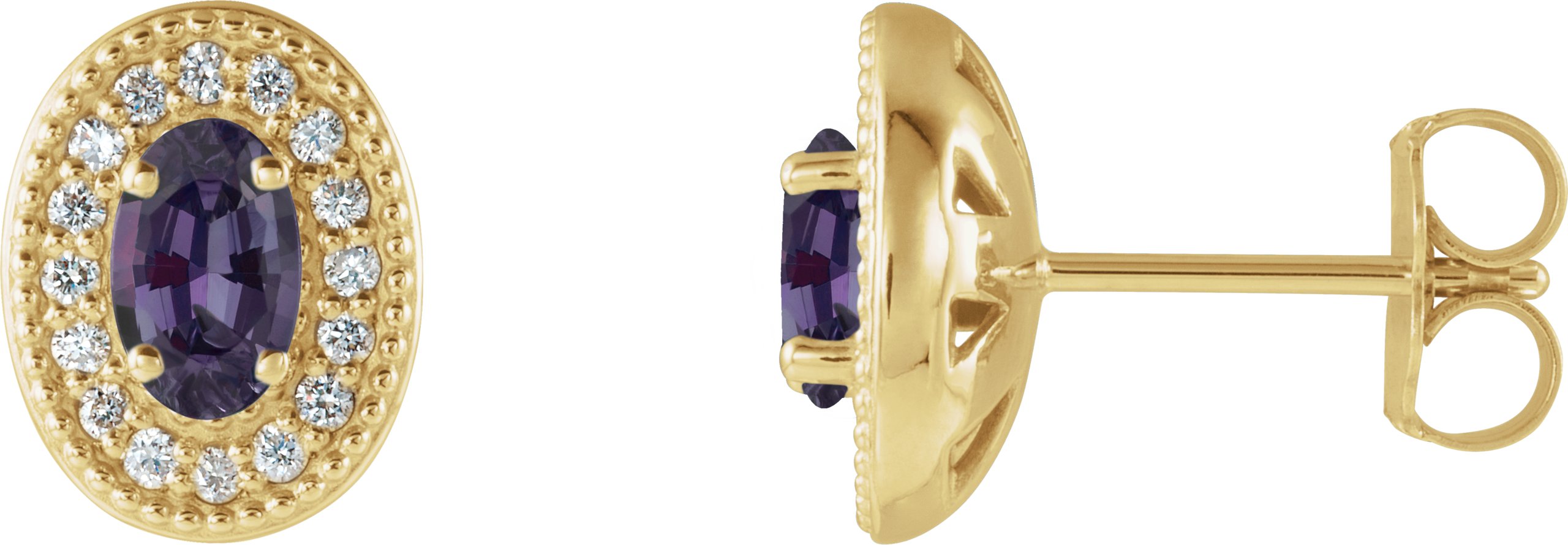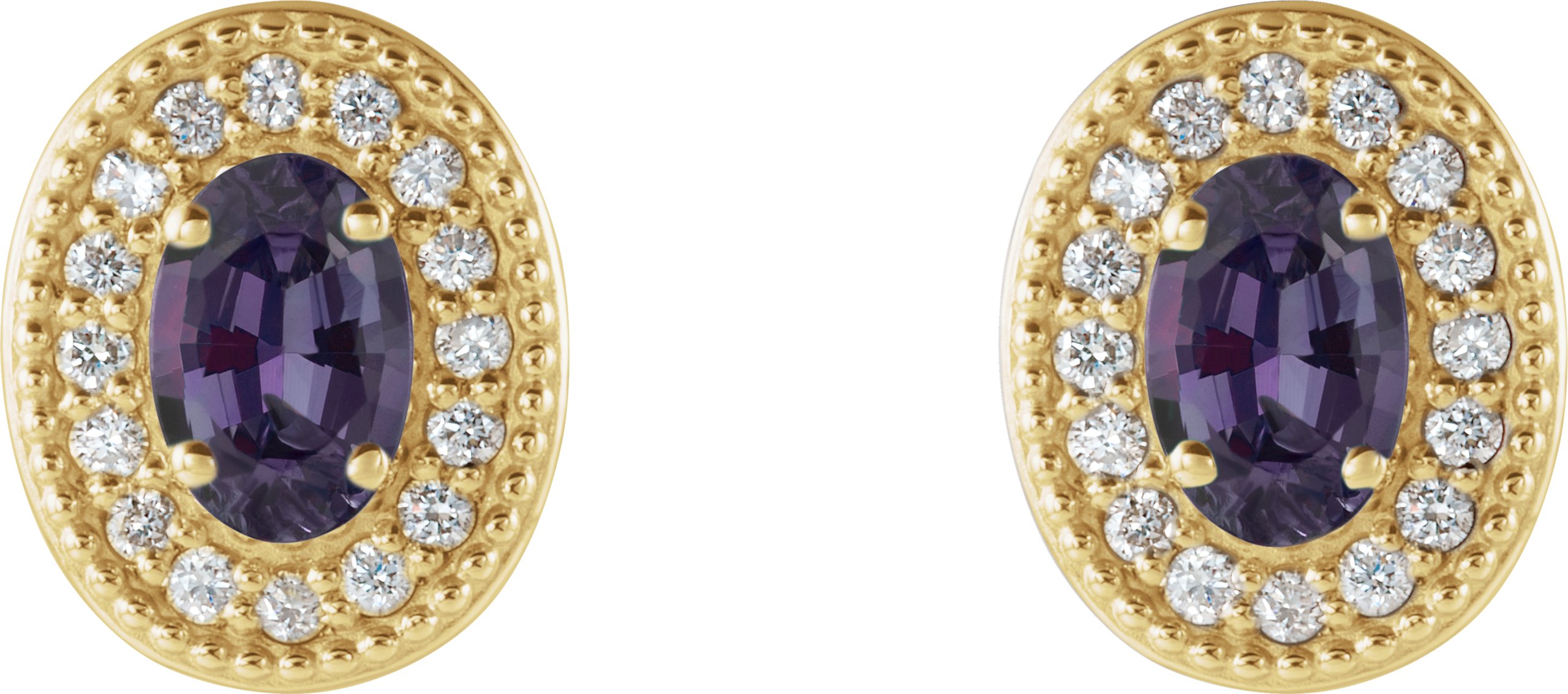 14K Yellow Chatham Created Alexandrite & 1/8 CTW Diamond Halo Style Earrings