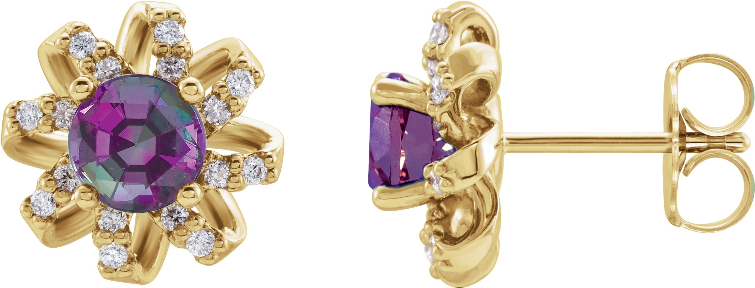 14K Yellow Chatham Created Alexandrite and .17 CTW Diamond Halo Style Earrings
