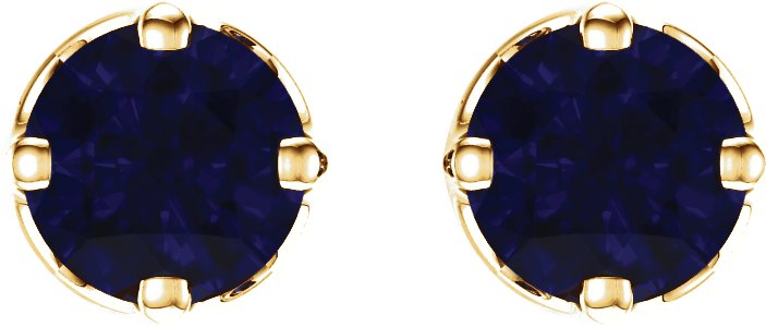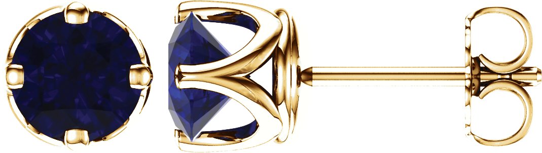 14K Yellow Chatham Created Blue Sapphire Earrings