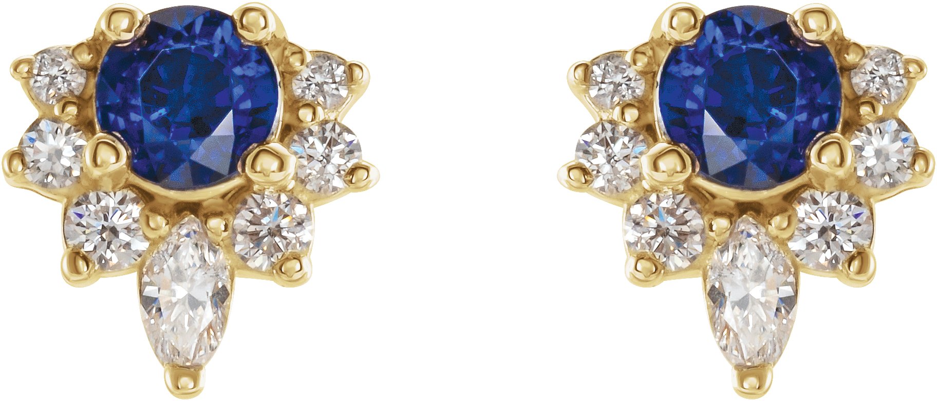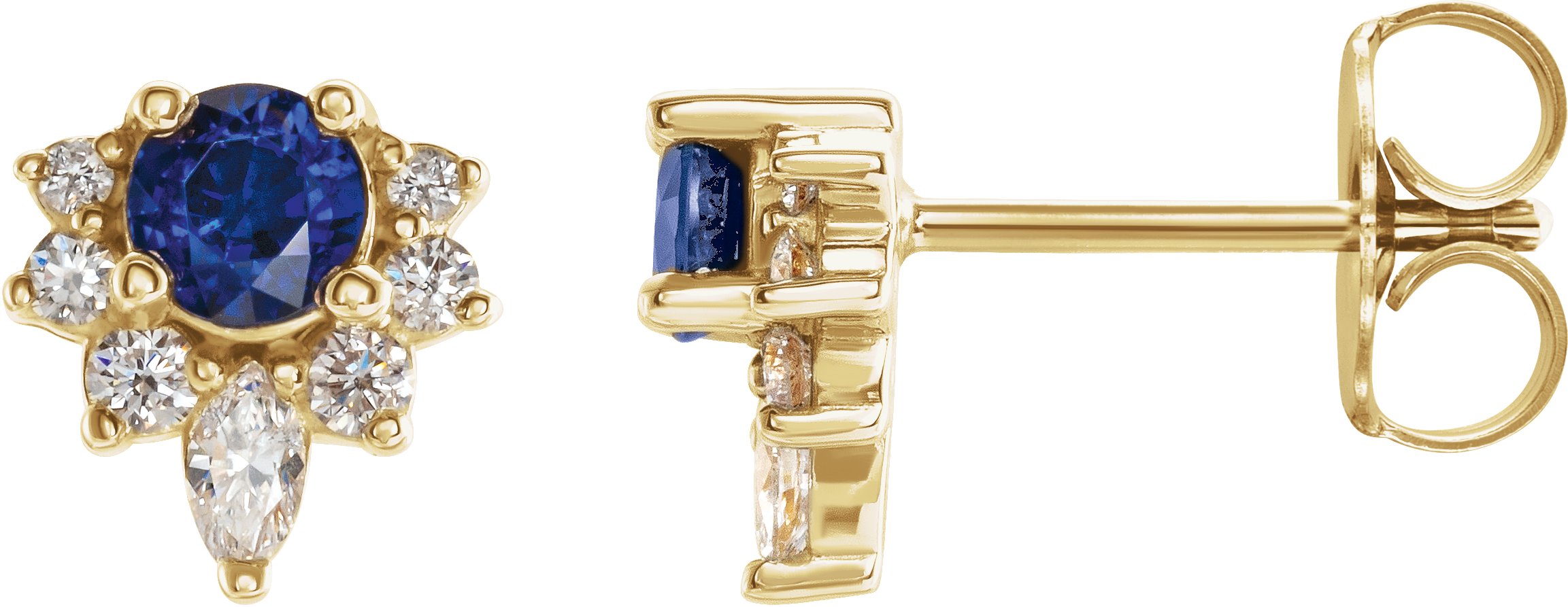 14K Yellow Chatham Created Blue Sapphire & 1/6 CTW Diamond Earrings