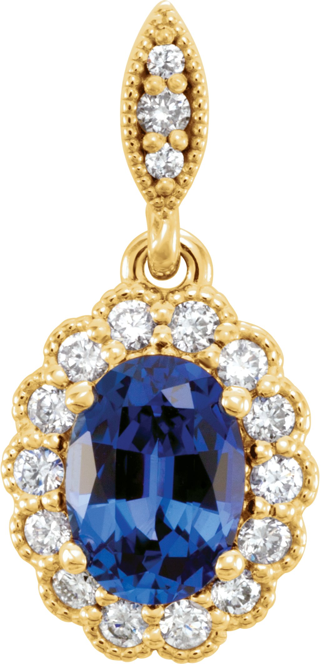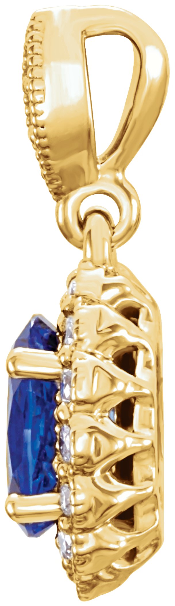 14K Yellow Chatham Created Blue Sapphire & 1/5 CTW Diamond Pendant