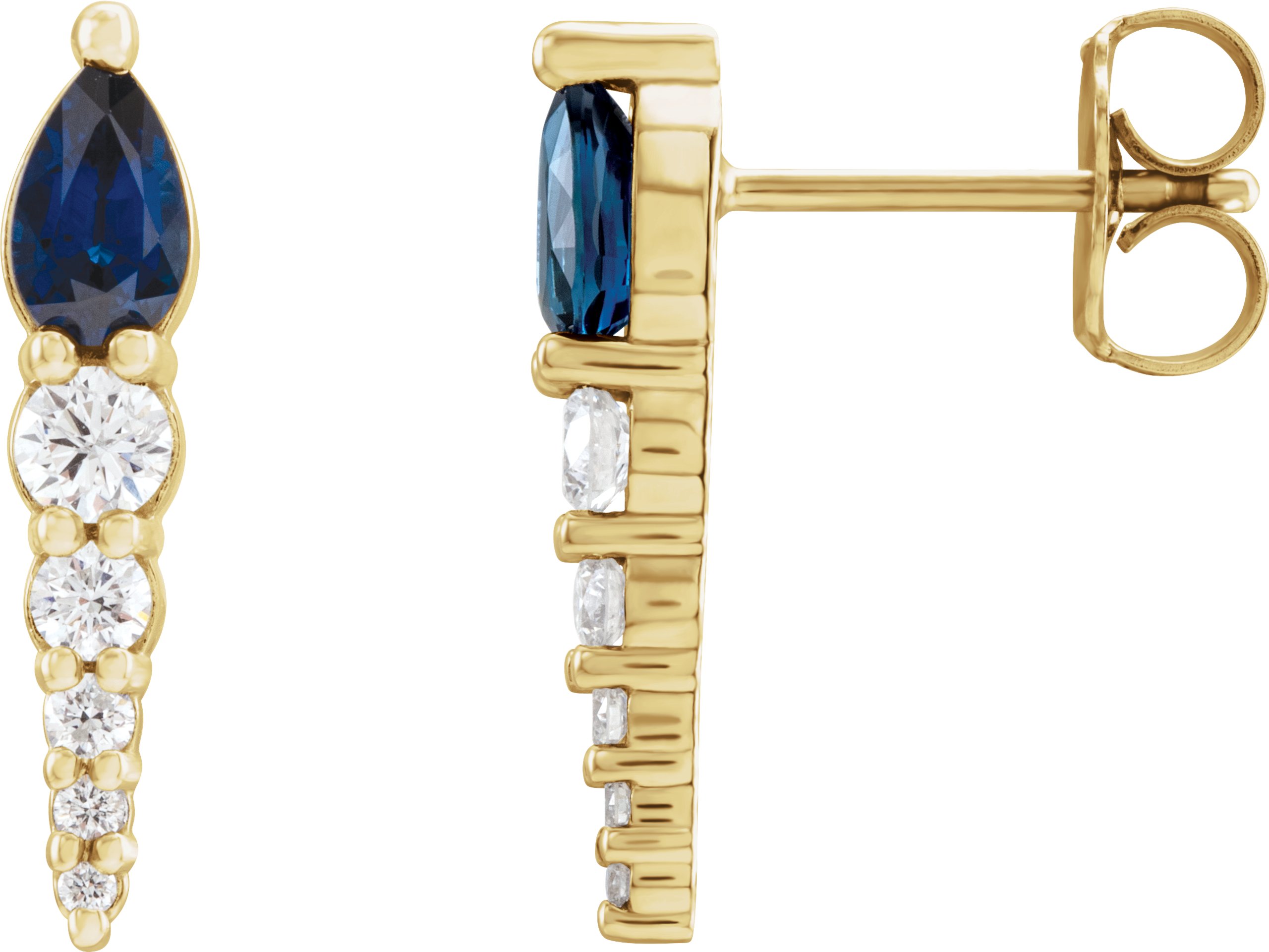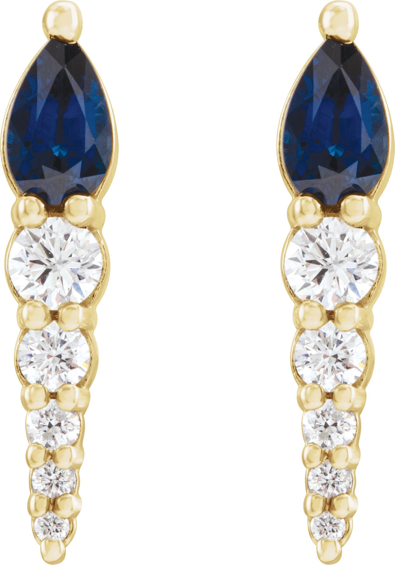14K Yellow Chatham Created Blue Sapphire & 1/4 CTW Diamond Earrings