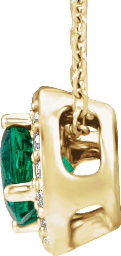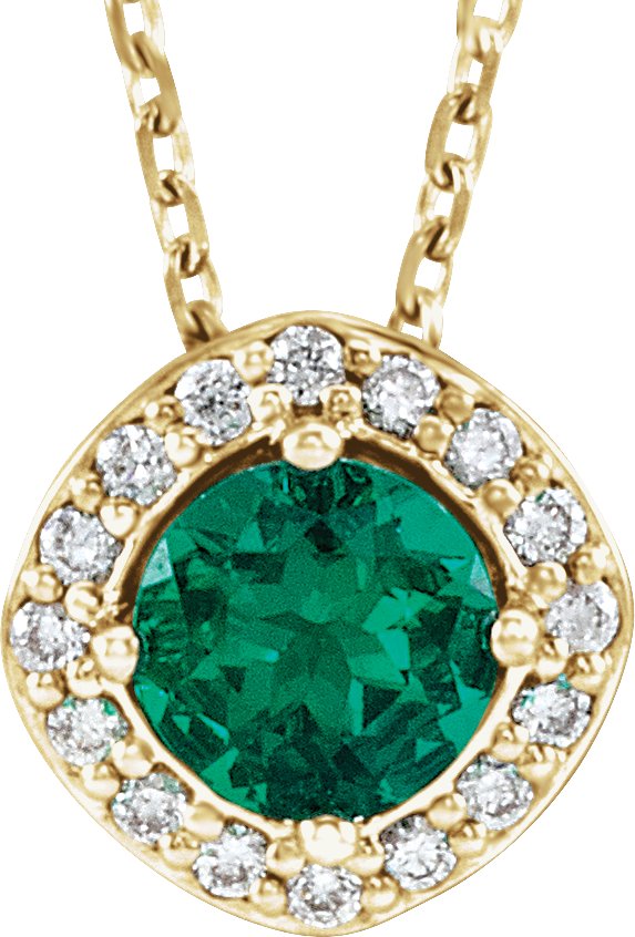 14K Yellow Chatham Created Emerald & .08 CTW Diamond 18 inch Necklace