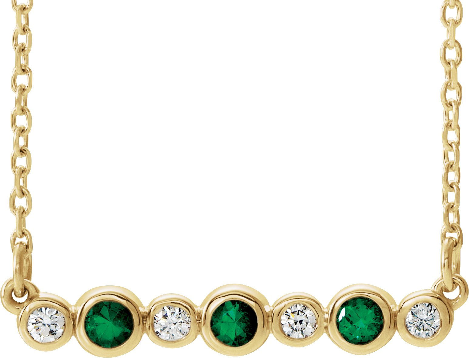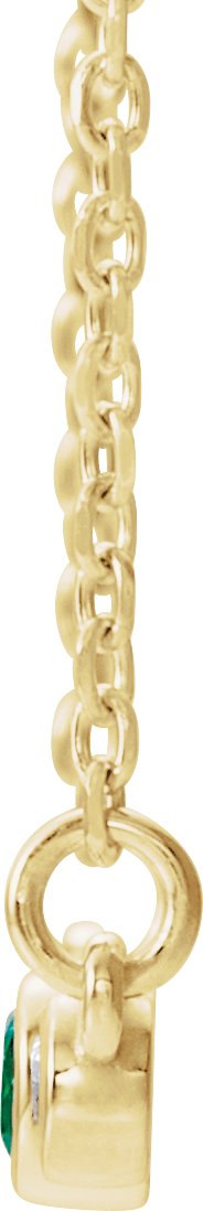 14K Yellow Chatham Created Emerald & .08 CTW Diamond Bezel Set Bar 16 18" Necklace Ref. 14204912