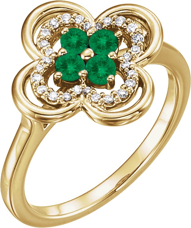 Description: Chatham Emerald And 1/10 CTW Dia Clover Ring