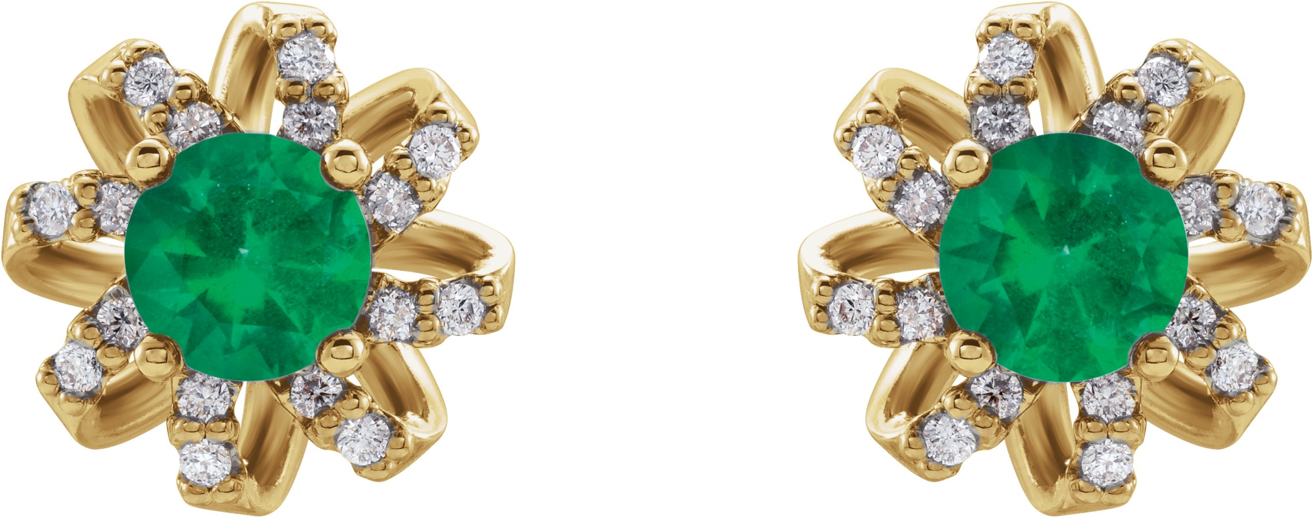 14K Yellow Chatham Created Emerald and .125 CTW Diamond Halo Style Earrings