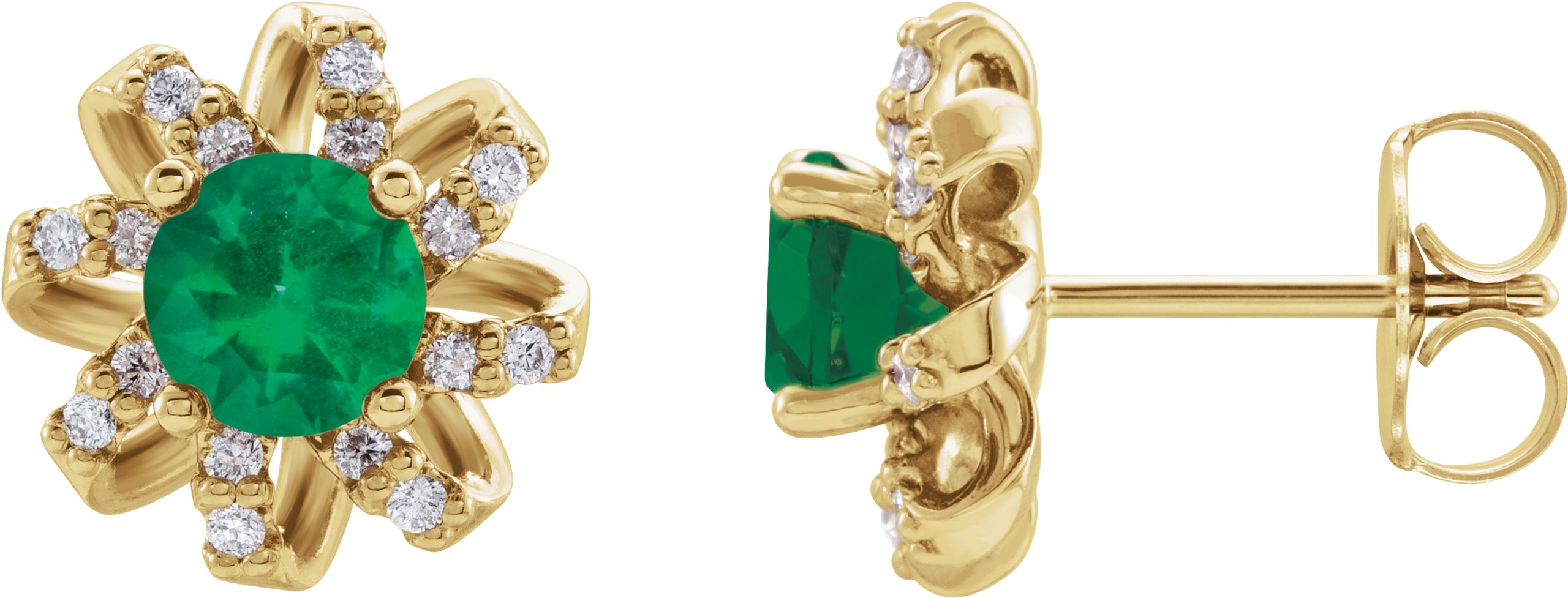 Description: Chatham Lab-Created Emerald Earrings With Diamond Accents