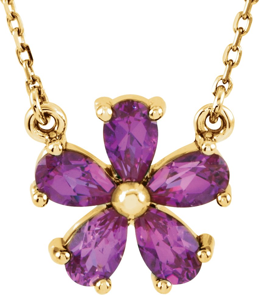 14K Yellow Chatham Created Pink Sapphire 16 inch Necklace