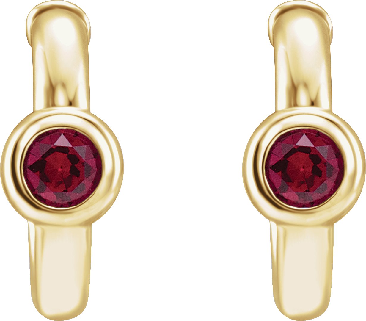 14K Yellow Chatham Created Ruby Hoop Earrings