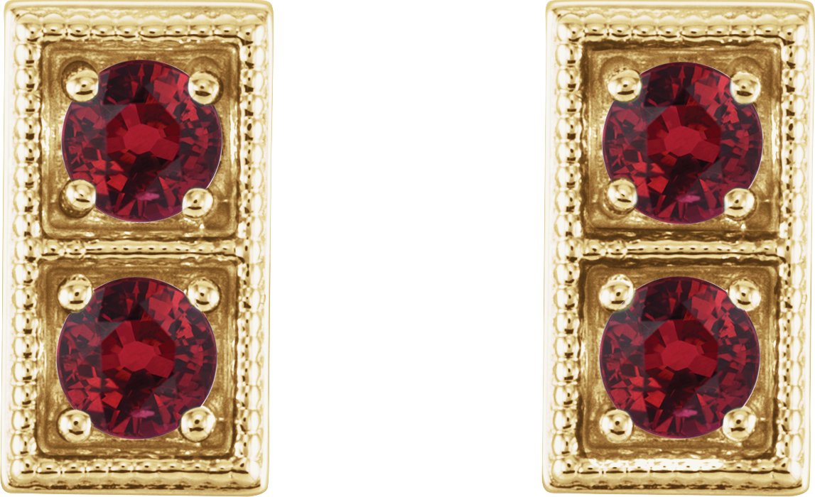 14K Yellow Chatham Created Ruby Two Stone Earrings