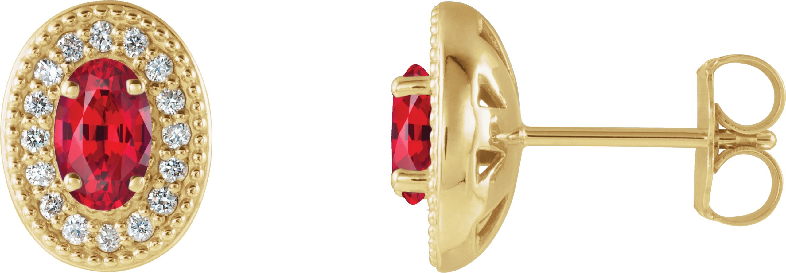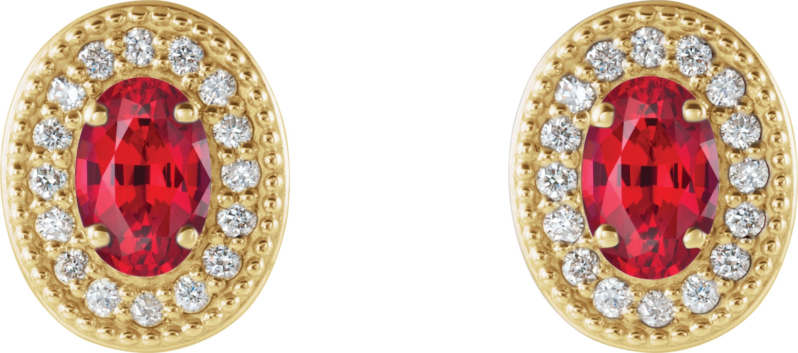 14K Yellow Chatham Created Ruby & 1/8 CTW Diamond Halo Style Earrings