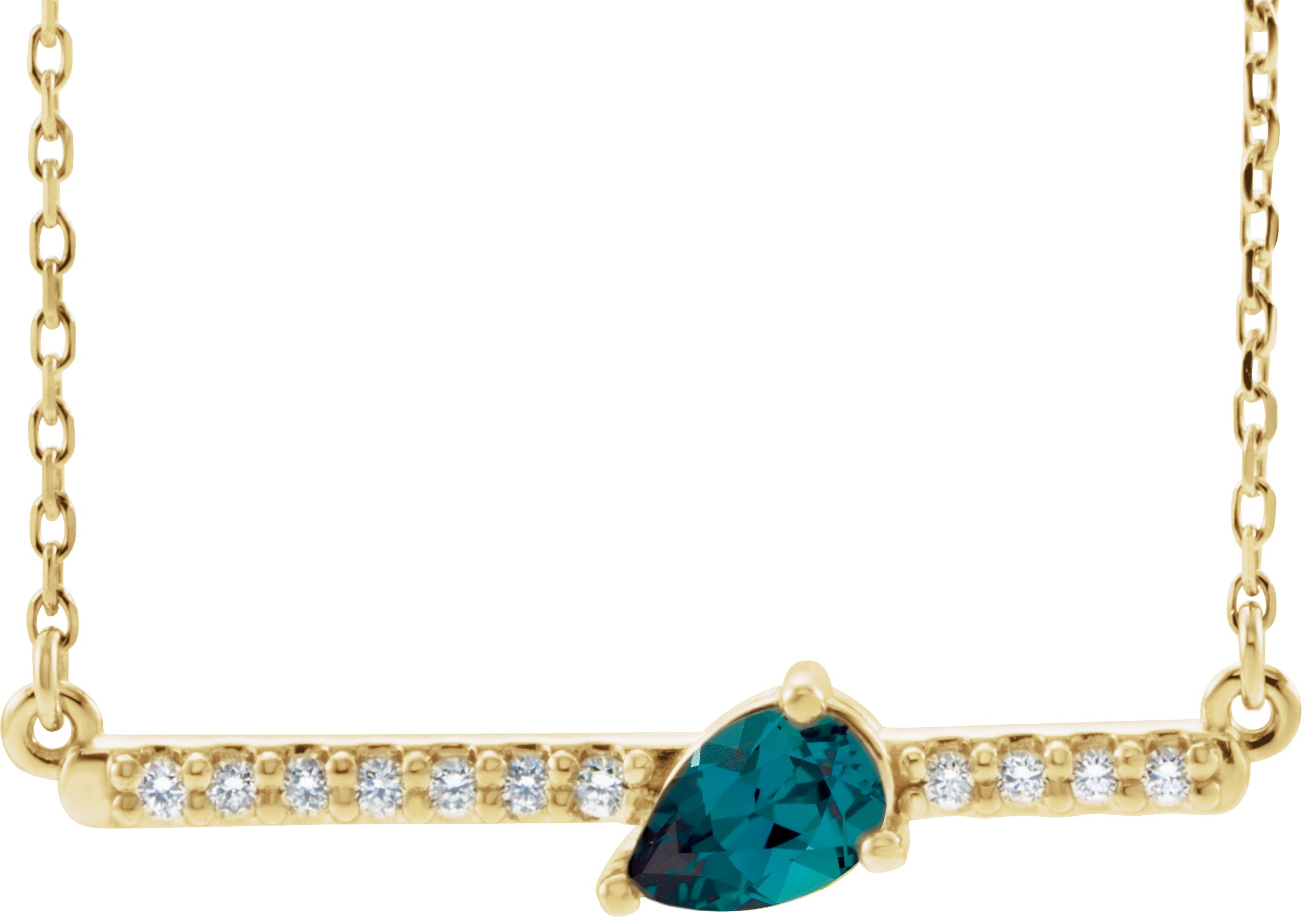 14K Yellow Chatham Lab Created Alexandrite & 1/10 CTW Diamond Bar 16 inch Necklace