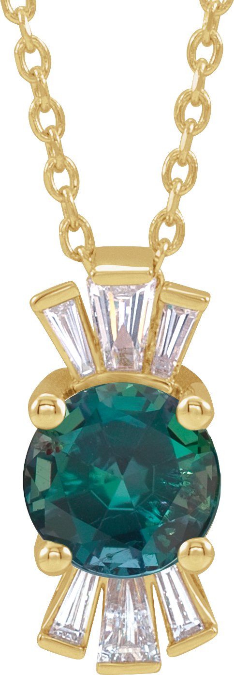 14K Yellow Chatham Lab Created Alexandrite & 1/6 CTW Diamond 16 18 inch Necklace
