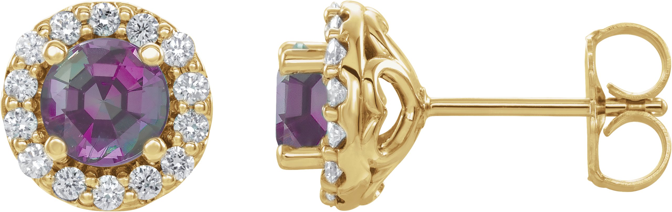 14K Yellow Chatham Lab Created Alexandrite & 1/4 Diamond Earrings