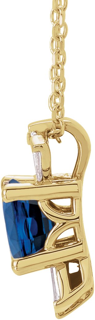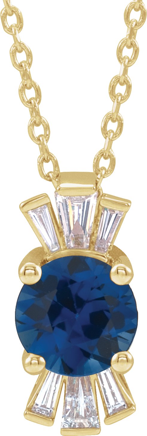 14K Yellow Chatham Lab Created Blue Sapphire & 1/6 CTW Diamond 16 18 inch Necklace