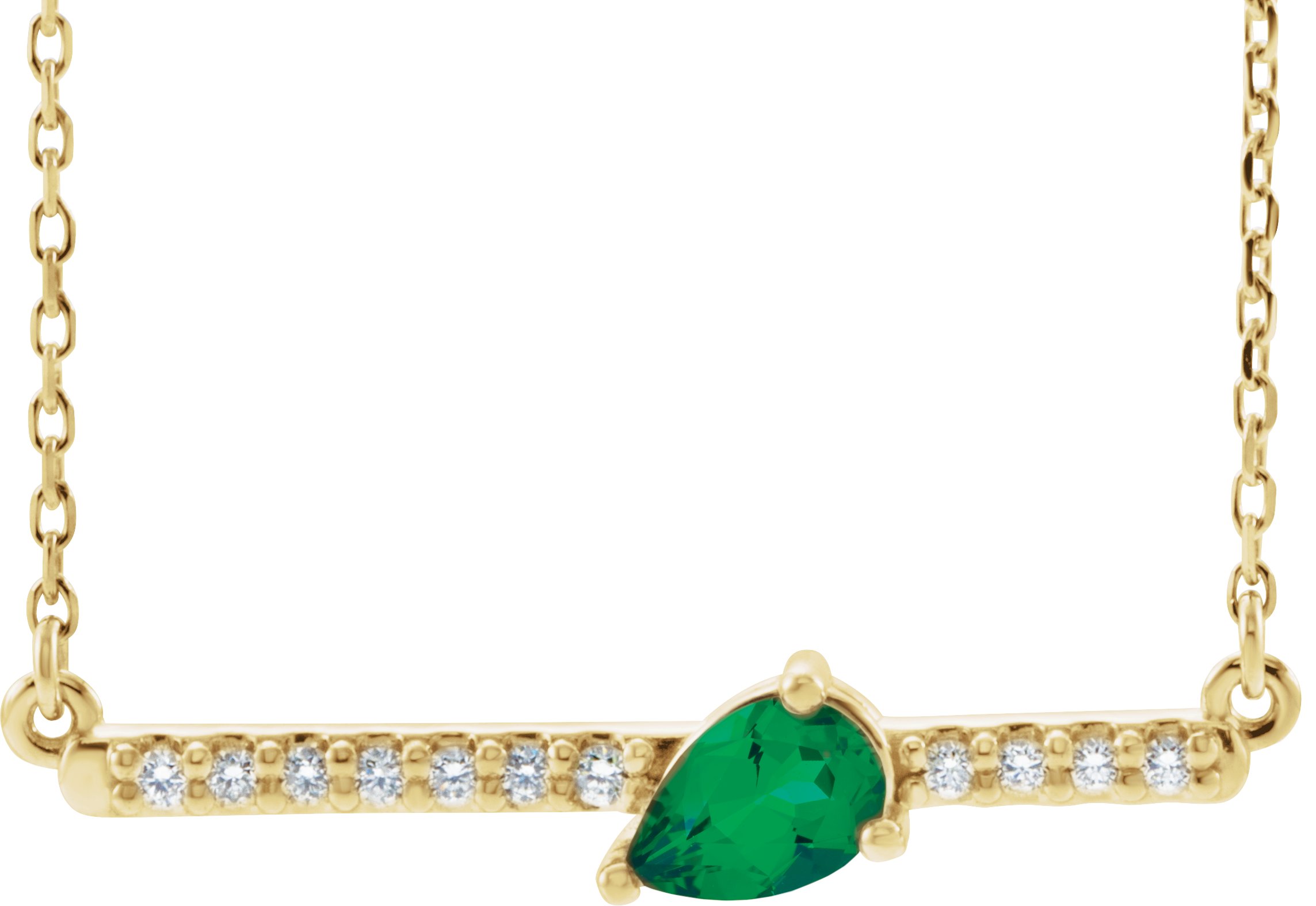 14K Yellow Chatham Lab Created Emerald & 1/10 CTW Diamond Bar 16 inch Necklace