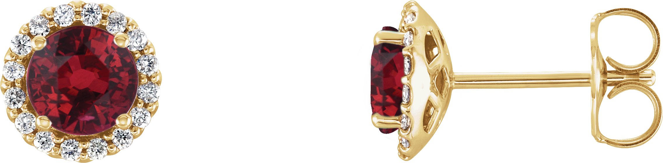 14K Yellow Chatham Lab Created Ruby and .125 CTW Diamond Earrings