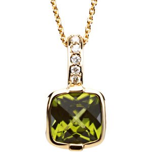 14K Yellow Checkerboard Peridot & .05 CTW Diamond 18 inch Necklace