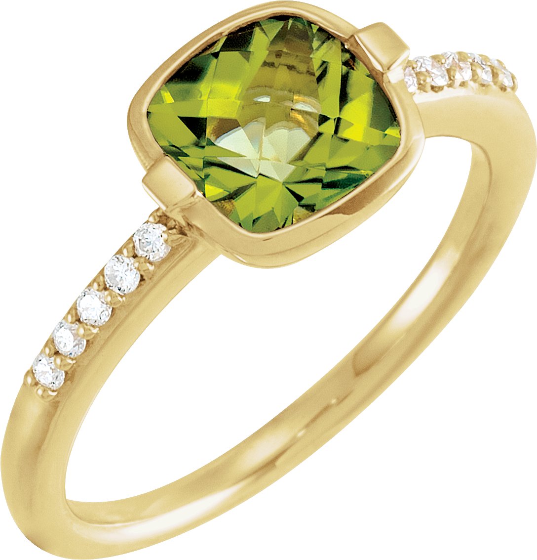 Description: Genuine Checkerboard Peridot And 1/10 Ctw Diamond Ring