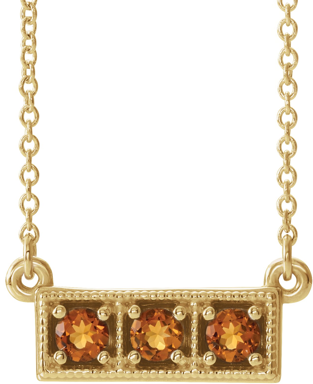14K Yellow Citrine Three Stone Granulated Bar 16 18" Necklace Ref. 14204276