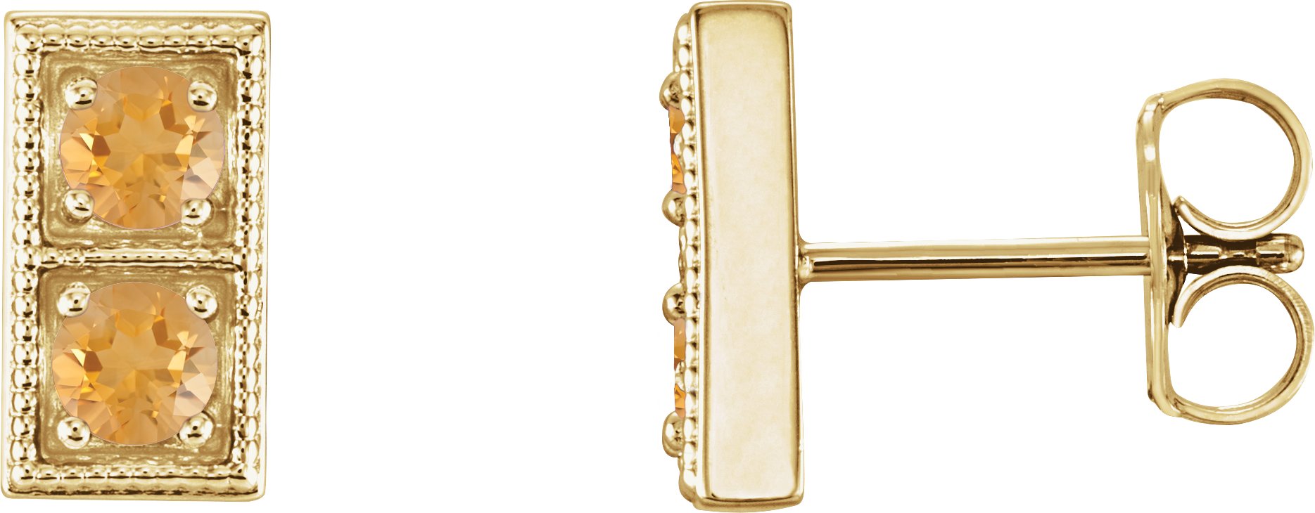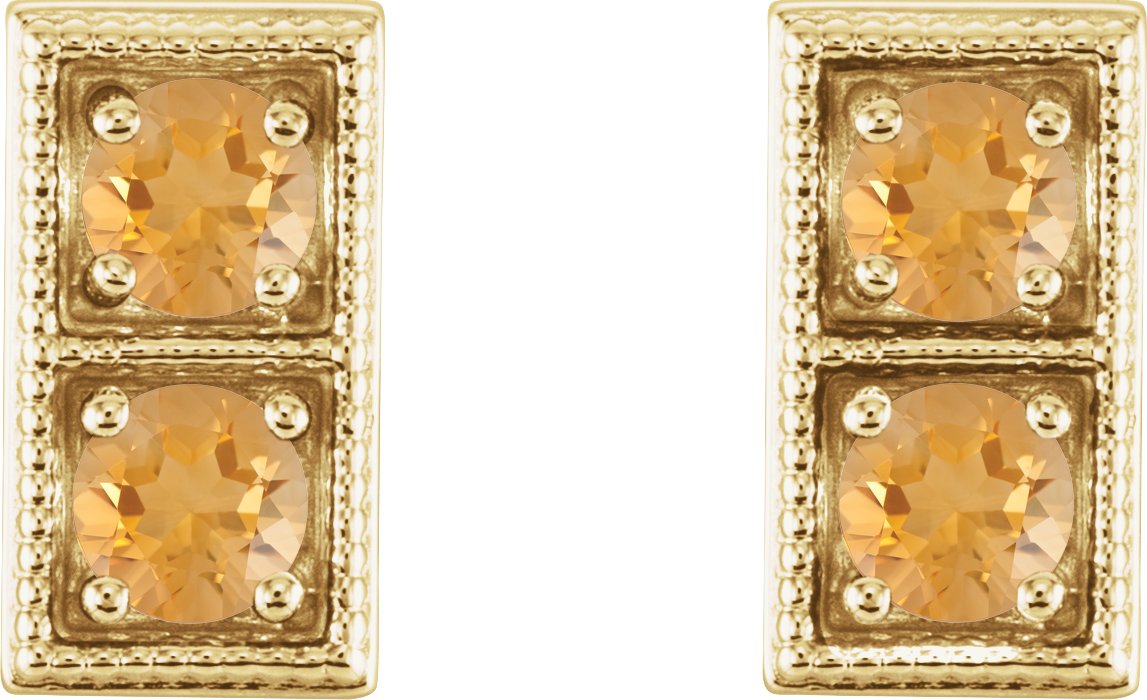 14K Yellow Citrine Two Stone Earrings
