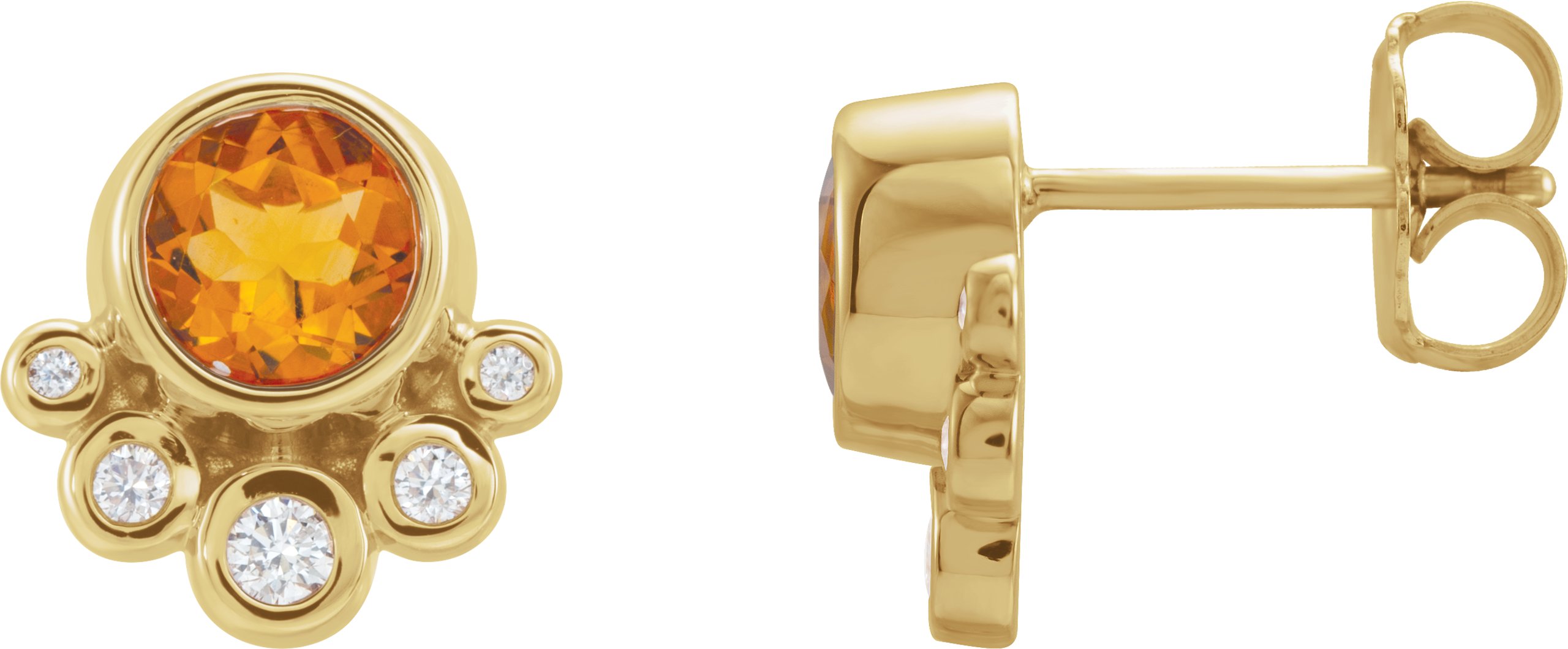 14K Yellow Citrine & 1/8 CTW Diamond Earrings