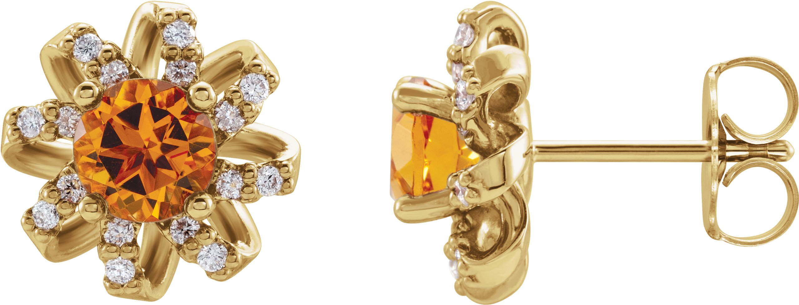 14K Yellow Citrine and .125 CTW Diamond Halo Style Earrings