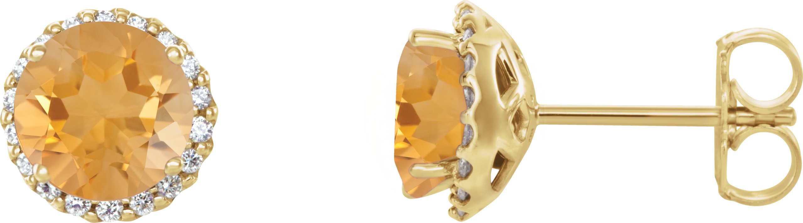 14K Yellow Citrine and .17 CTW Diamond Earrings