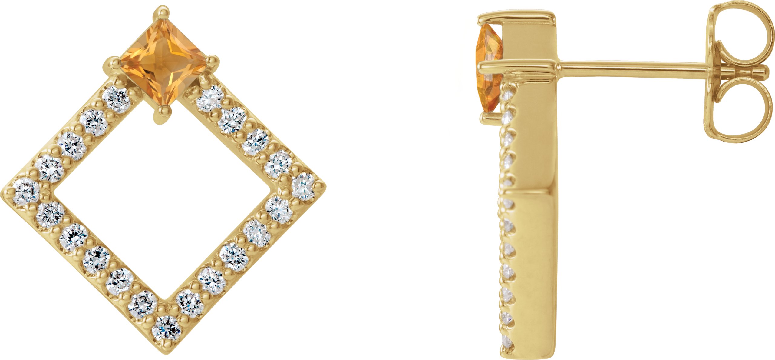 14K Yellow Citrine & 1/3 CTW Diamond Earrings