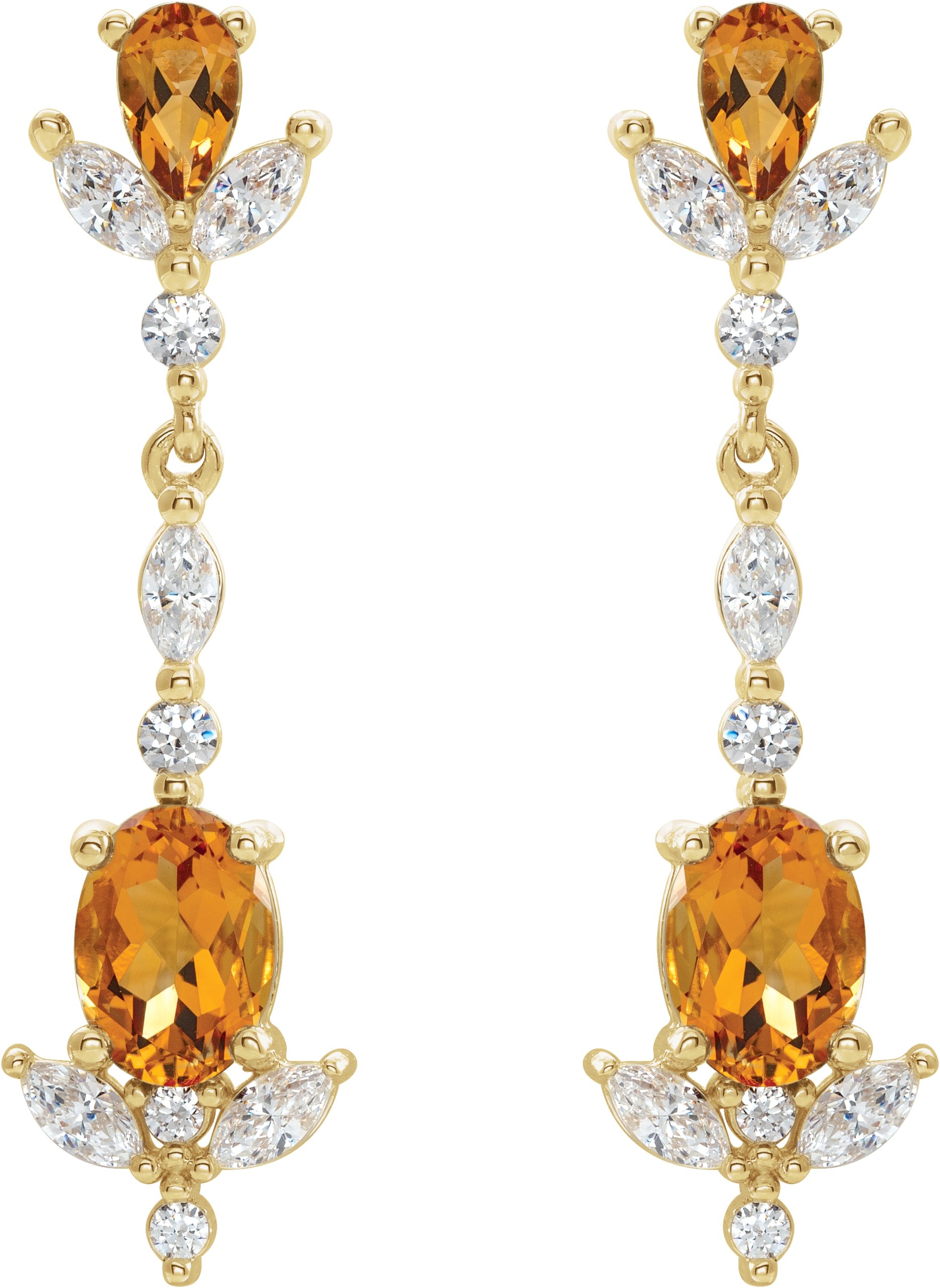 14K Yellow Citrine and .75 CTW Diamond Earrings