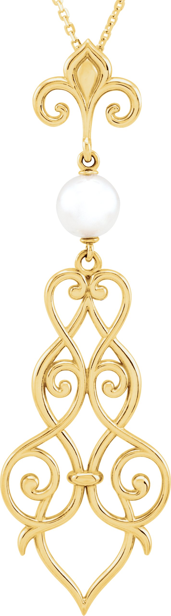 14K Yellow Cultured Akoya Pearl Fleur de lis Scroll 18" Necklace Ref. 4945950